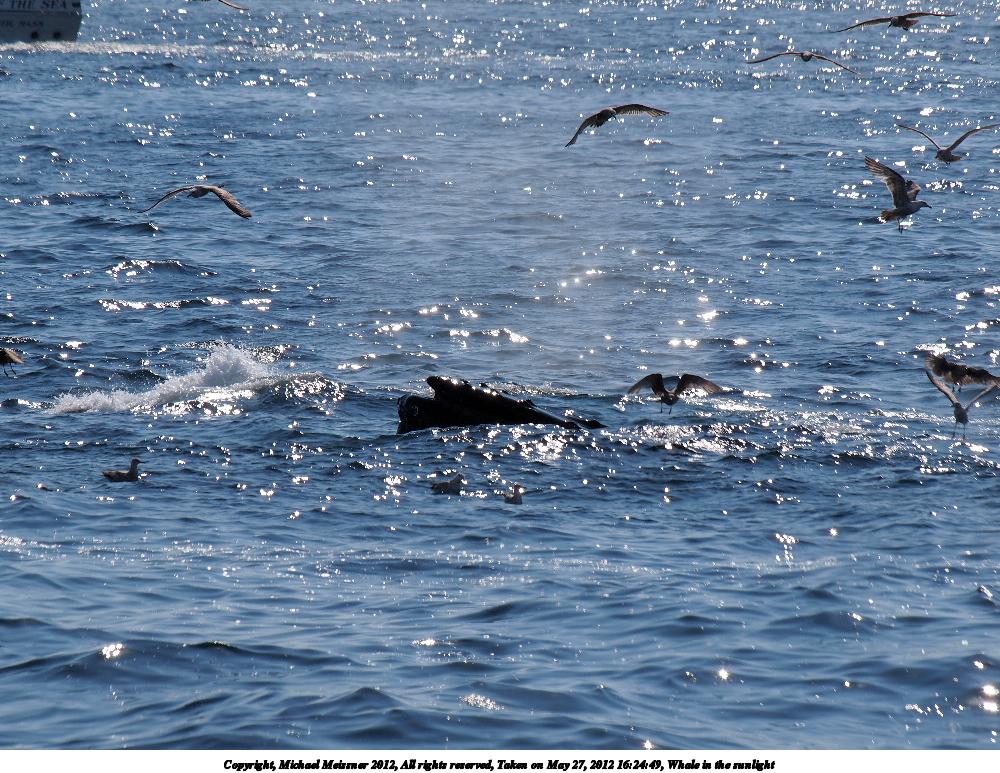 Picture #21: Whale in the sunlight #6 900x698, 167,026 bytes (164K), (html file) Copyright, Michael Meissner 2012, All rights reserved Olympus E-3 camera with Olympus 14-54mm f/2.8-3.5 lens f/8.0, ISO 100, 1/400 sec, 29.0mm, auto mode, vivid color, matrix metering, IS1 (All Direction Shake IS), noise filter low 35mm equivalent focal length 58.0mm Programs used: crop, raw therapee Taken by Michael Meissner on May 27, 2012 16:39:17 Last modified on June 02, 2012 at 21:08 |