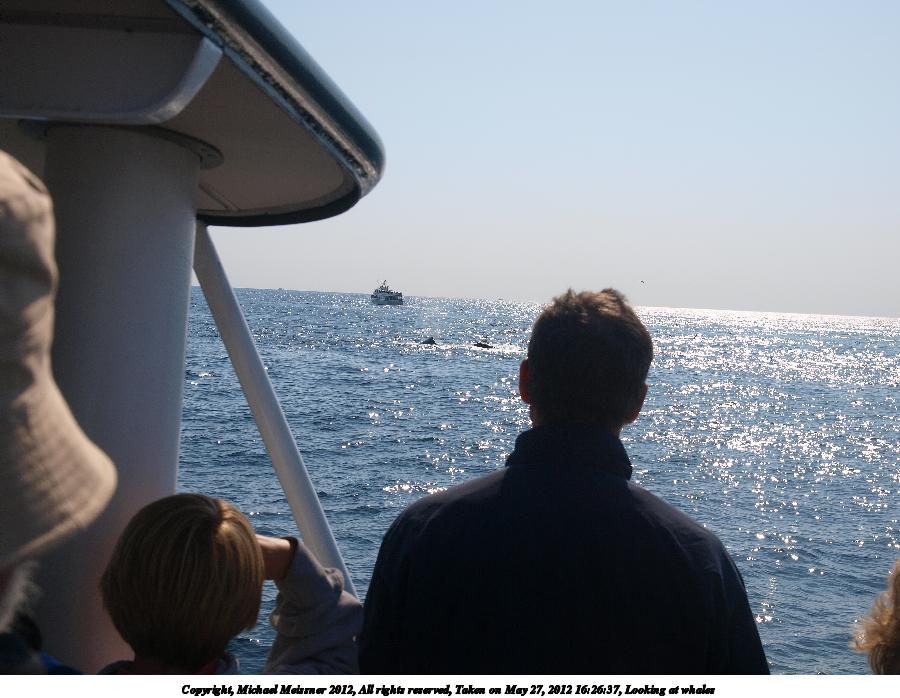 Picture #27: Looking at whales #2 1000x773, 163,406 bytes (160K), (html file) Copyright, Michael Meissner 2012, All rights reserved Olympus E-5 camera with Olympus 50-200mm lens and Olympus EC-14 (1.4x) f/6.3, ISO 200, 1/640 sec, 165.0mm, auto mode, vivid color, matrix metering, IS1 (All Direction Shake IS) 35mm equivalent focal length 331.0mm, EC-14 Programs used: crop, raw therapee Taken by Michael Meissner on May 27, 2012 16:31:39 Last modified on June 02, 2012 at 21:06 |