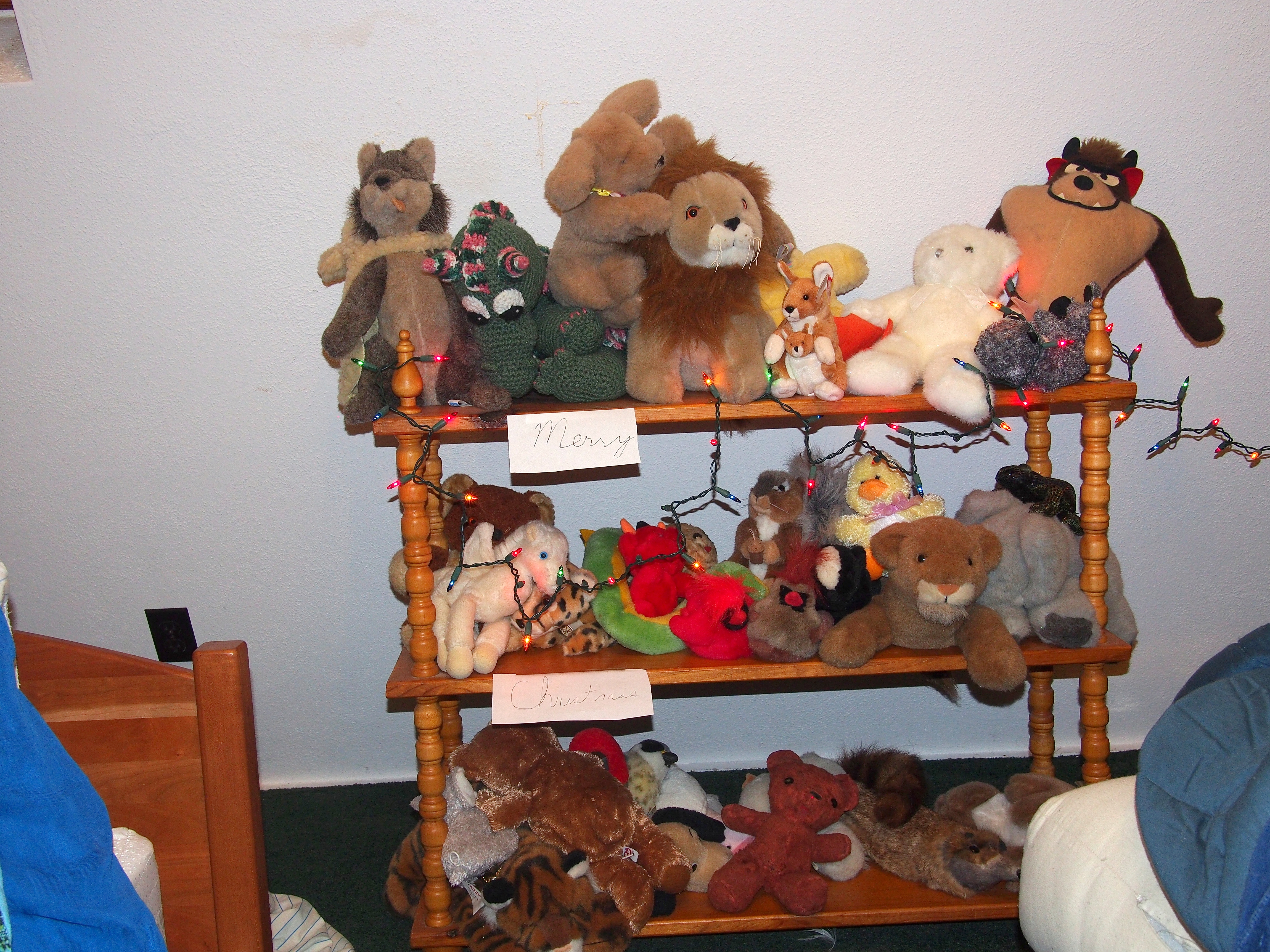 Picture #22: Stuffed animals with Christmas lights Small: 920x713, 149,996 bytes (147K), (html file) Large: 4600x3450, 11,775,805 bytes (12M), (html file) Copyright, Michael Meissner 2013, All rights reserved Olympus E-PM2 camera with Panasonic 20mm lens f/5.6, ISO 640, flash (+0.33 flash compensation), 1/60 sec, 20.0mm, aperture priority, vivid color, matrix metering, IS1 (All Direction Shake IS), noise filter low 35mm equivalent focal length 40.0mm Programs used: crop, gimp, rawtherapee Taken by Michael Meissner on December 24, 2013 23:59:14 Last modified on January 05, 2014 at 18:09 |