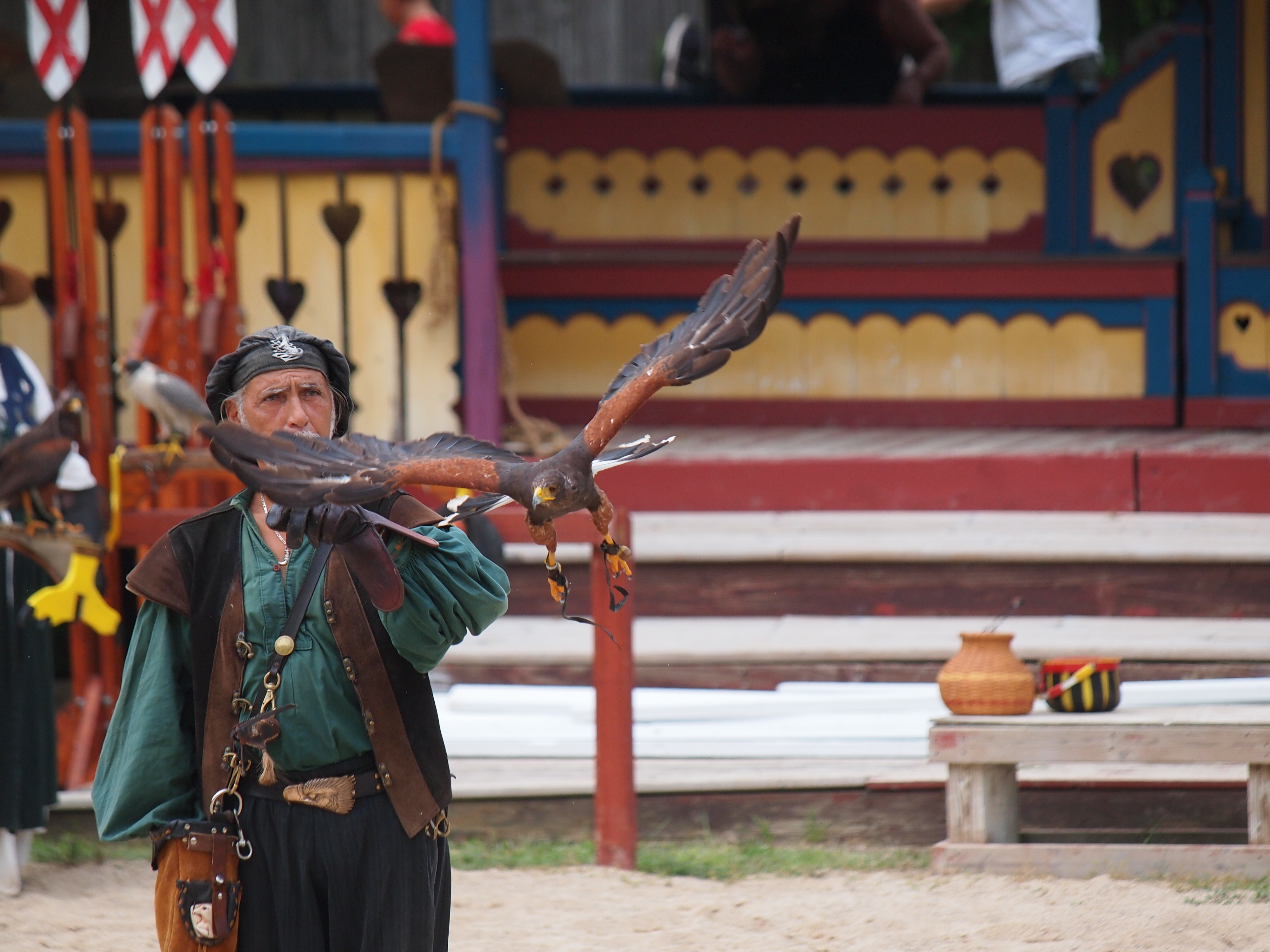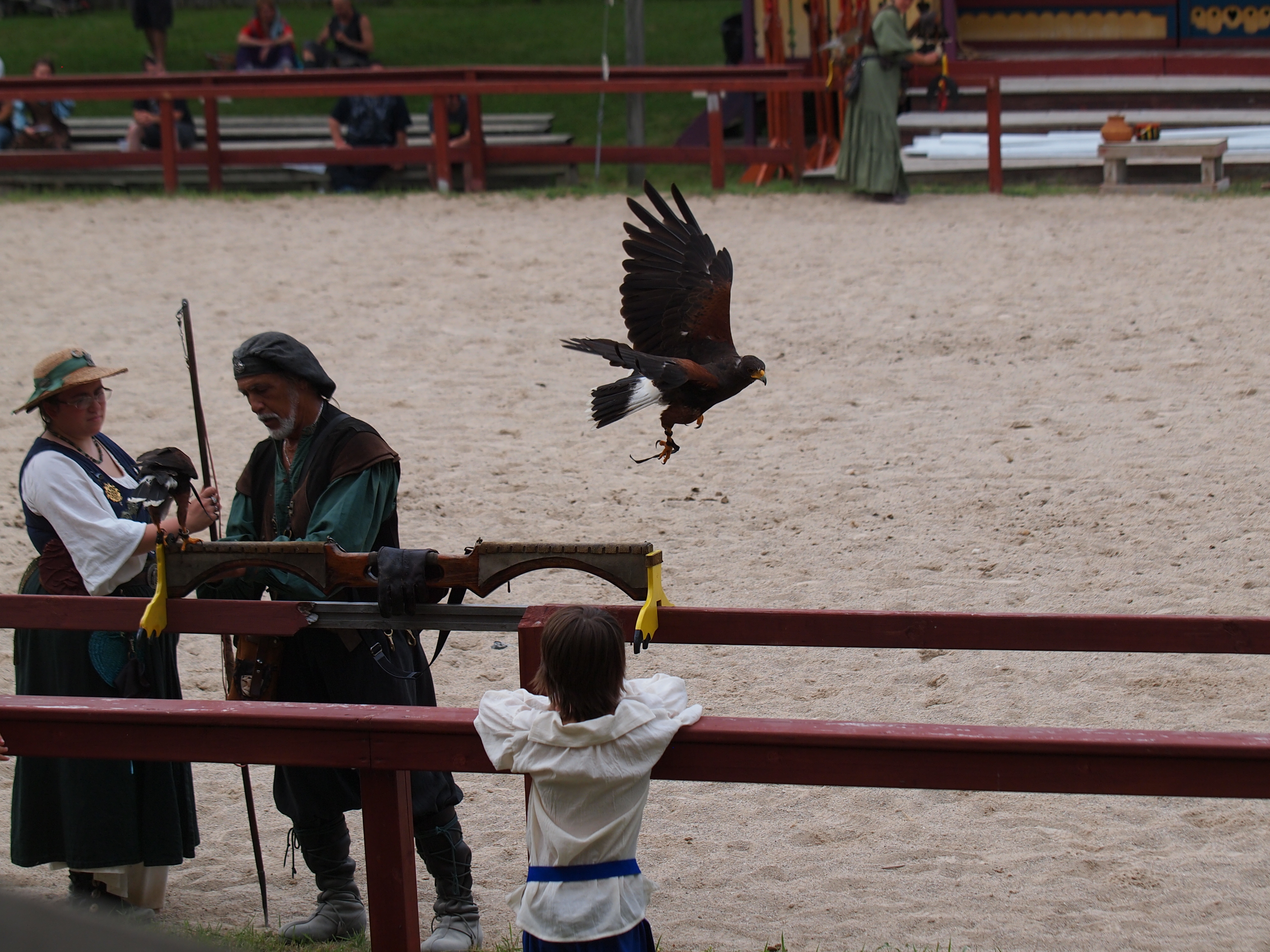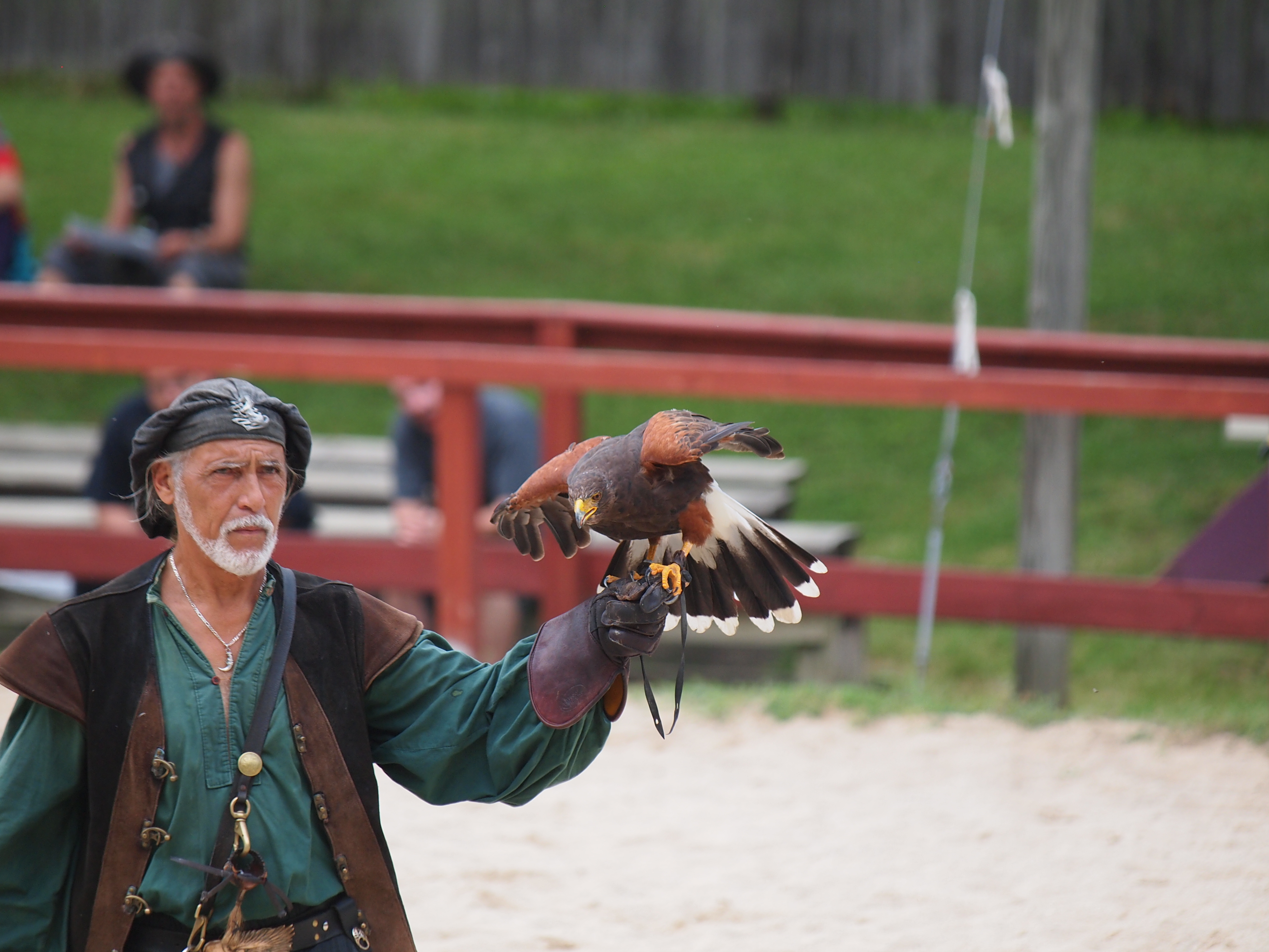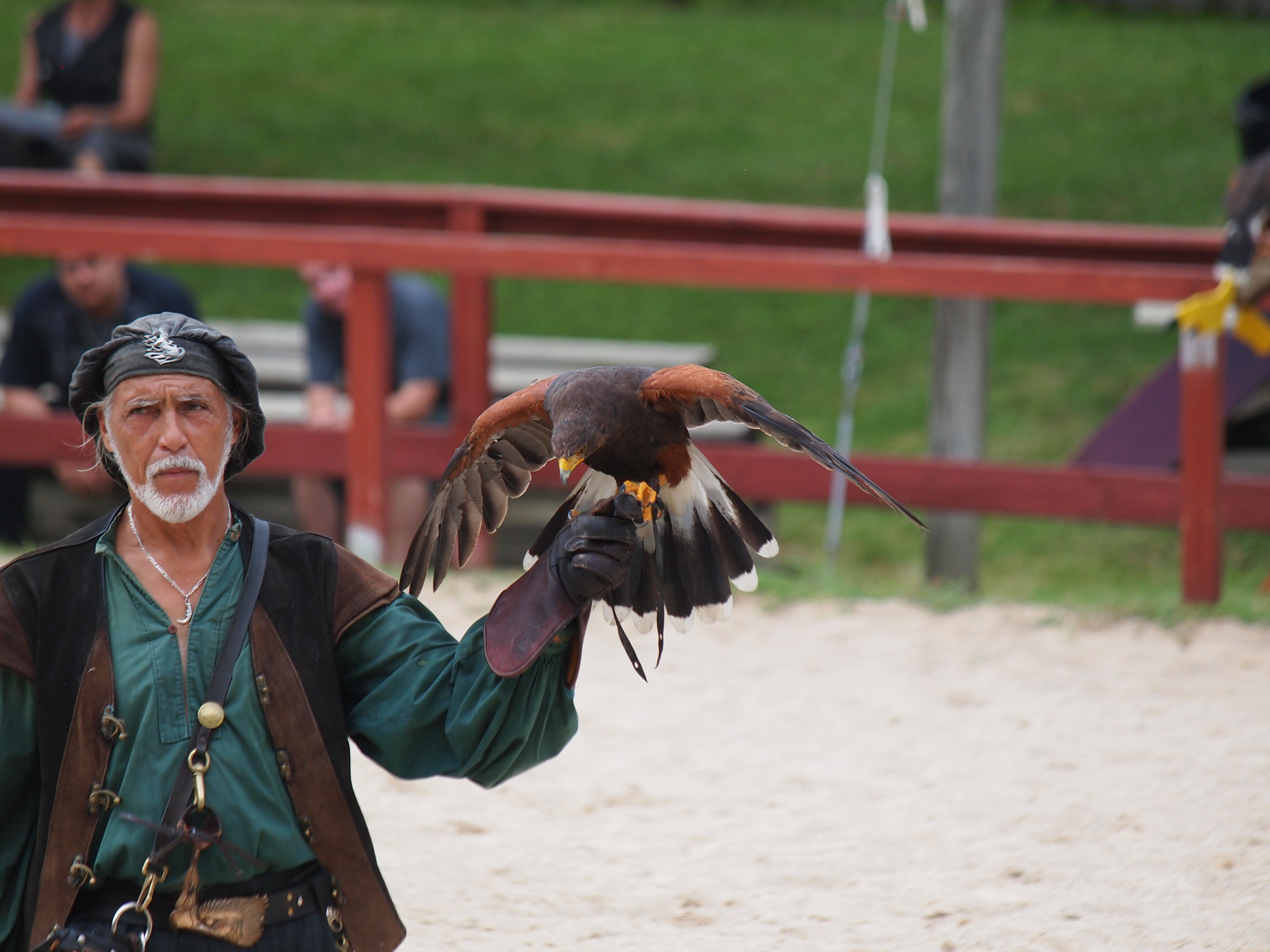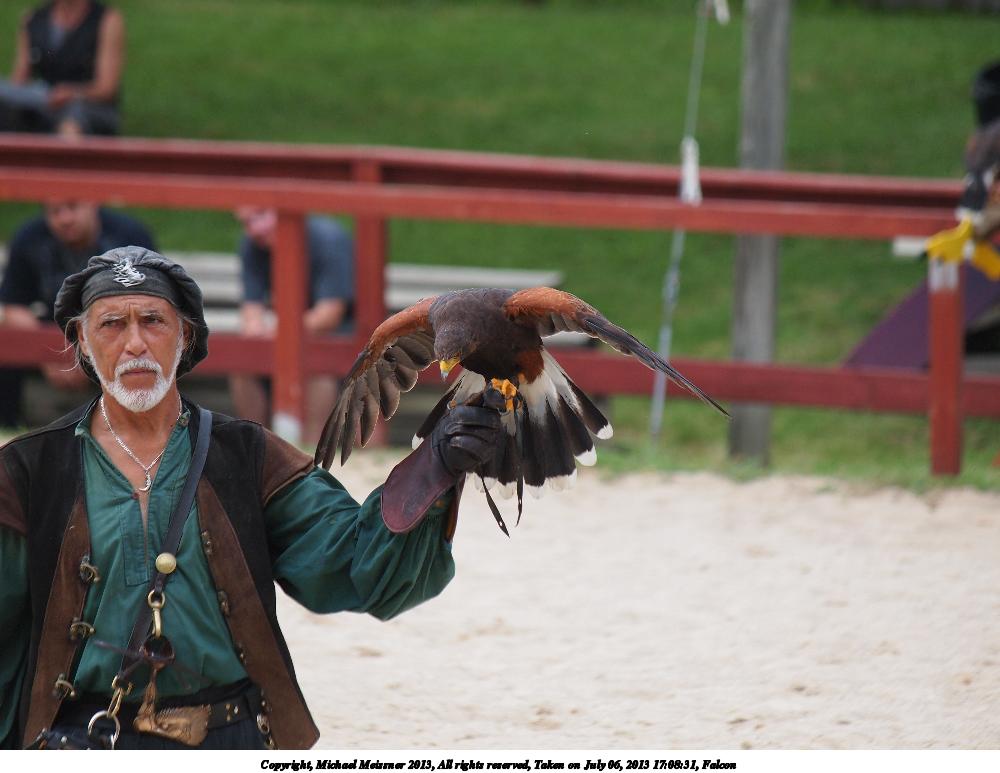 Picture #1: Royal Falconer and a falcon Thumb: 500x375, 55,547 bytes (55K) Small: 1000x773, 133,821 bytes (131K), (html file) Large: 4000x3000, 5,467,817 bytes (5.2M), (html file) Copyright, Michael Meissner 2013, All rights reserved Olympus E-5 camera with Olympus 50-200mm lens f/3.5, ISO 500, 1/1250 sec, 200.0mm, shutter priority, vivid color, center weight metering, continous focus, IS1 (All Direction Shake IS) 35mm equivalent focal length 401.0mm Programs used: crop Taken by Michael Meissner on July 06, 2013 16:57:27 Last modified on December 03, 2013 at 23:27 |