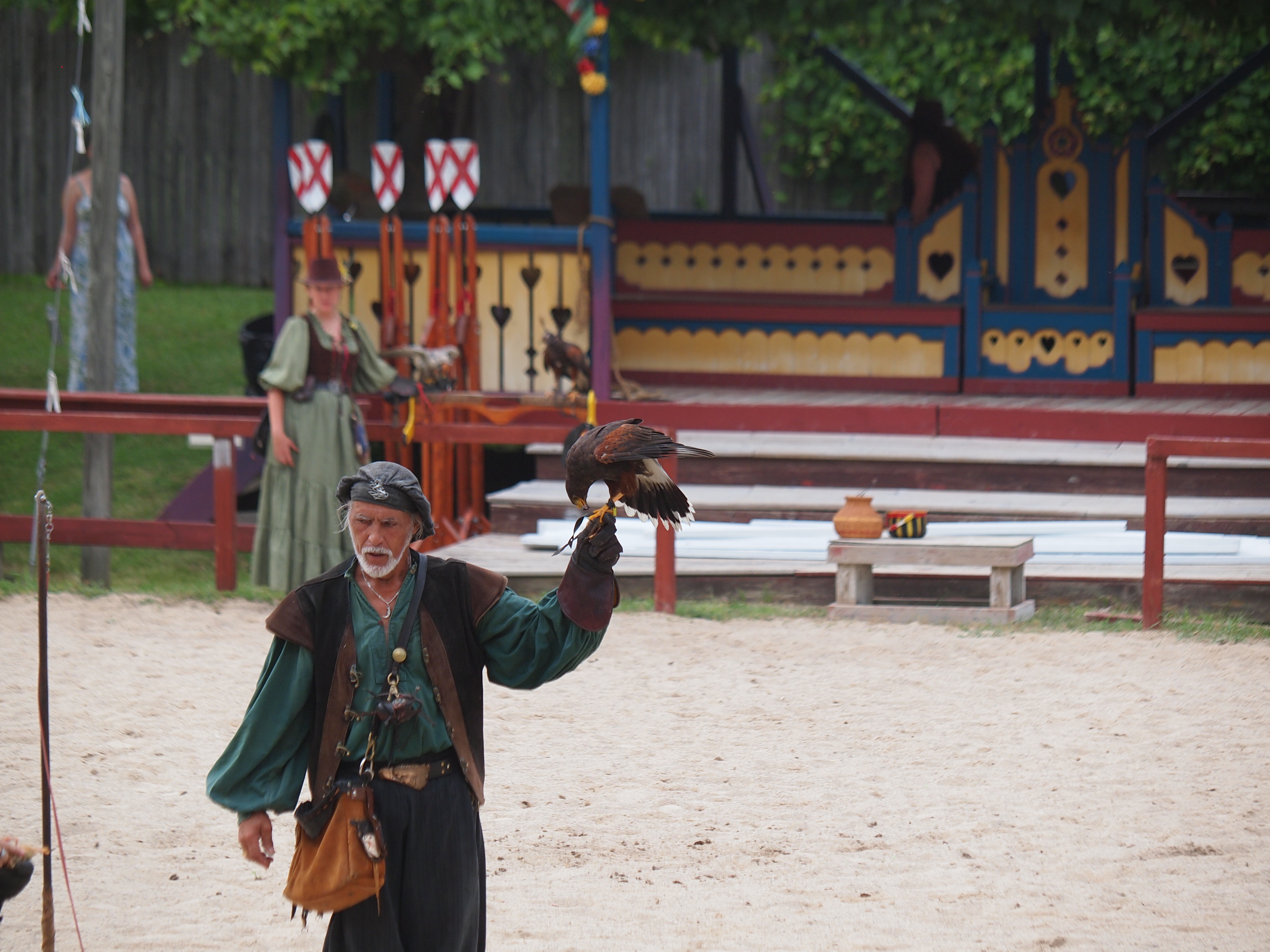 Picture #34: Royal falconer and falcon Thumb: 500x375, 46,960 bytes (46K) Small: 1000x773, 116,508 bytes (114K), (html file) Large: 4000x3000, 5,136,731 bytes (4.9M), (html file) Copyright, Michael Meissner 2013, All rights reserved Olympus E-5 camera with Olympus 50-200mm lens f/2.9, ISO 200, 1/1250 sec, 104.0mm, shutter priority, vivid color, matrix metering, continous focus, IS1 (All Direction Shake IS) 35mm equivalent focal length 208.0mm Programs used: crop Taken by Michael Meissner on July 06, 2013 17:16:47 Last modified on December 03, 2013 at 23:39 |