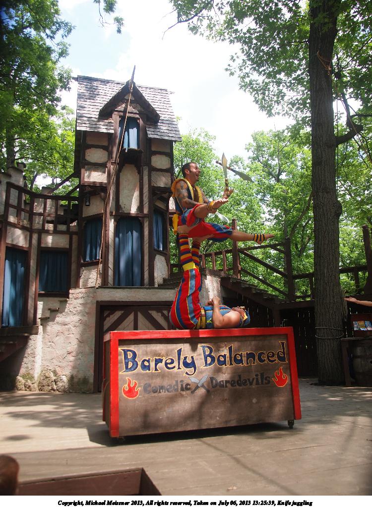Picture #5: Knife juggling Thumb: 375x500, 65,676 bytes (65K) Small: 750x1023, 201,889 bytes (198K), (html file) Large: 3000x4000, 6,579,479 bytes (6.3M), (html file) Copyright, Michael Meissner 2013, All rights reserved Olympus E-5 camera with Olympus 14-54mm f/2.8-3.5 lens f/2.8, ISO 200, 1/800 sec, 14.0mm, shutter priority, vivid color, center weight metering, IS1 (All Direction Shake IS) 35mm equivalent focal length 28.0mm Programs used: crop, rotate left Taken by Michael Meissner on July 06, 2013 13:25:39 Last modified on December 03, 2013 at 22:57 |
