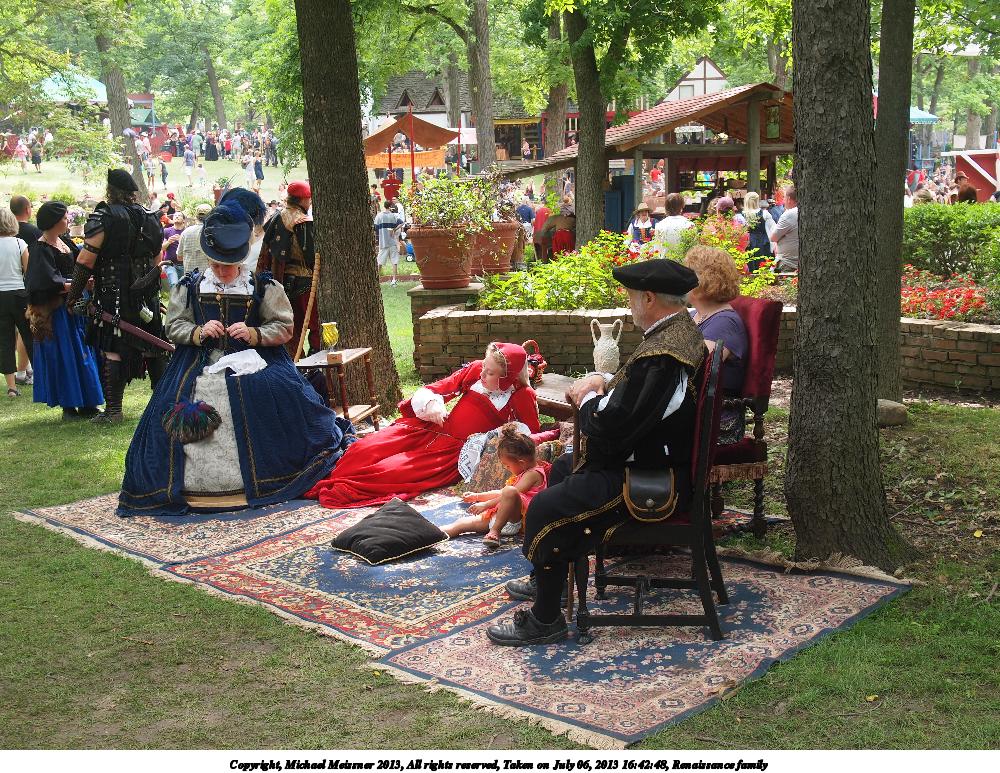 Picture #15: Renaissance family Thumb: 500x375, 75,252 bytes (74K) Small: 1000x773, 271,063 bytes (265K), (html file) Large: 4000x3000, 6,150,576 bytes (5.9M), (html file) Copyright, Michael Meissner 2013, All rights reserved Olympus E-5 camera with Olympus 14-54mm f/2.8-3.5 lens f/3.5, ISO 200, 1/100 sec, 25.0mm, auto mode, vivid color, center weight metering, IS1 (All Direction Shake IS) 35mm equivalent focal length 50.0mm Programs used: crop Taken by Michael Meissner on July 06, 2013 16:42:48 Last modified on December 03, 2013 at 23:24 |