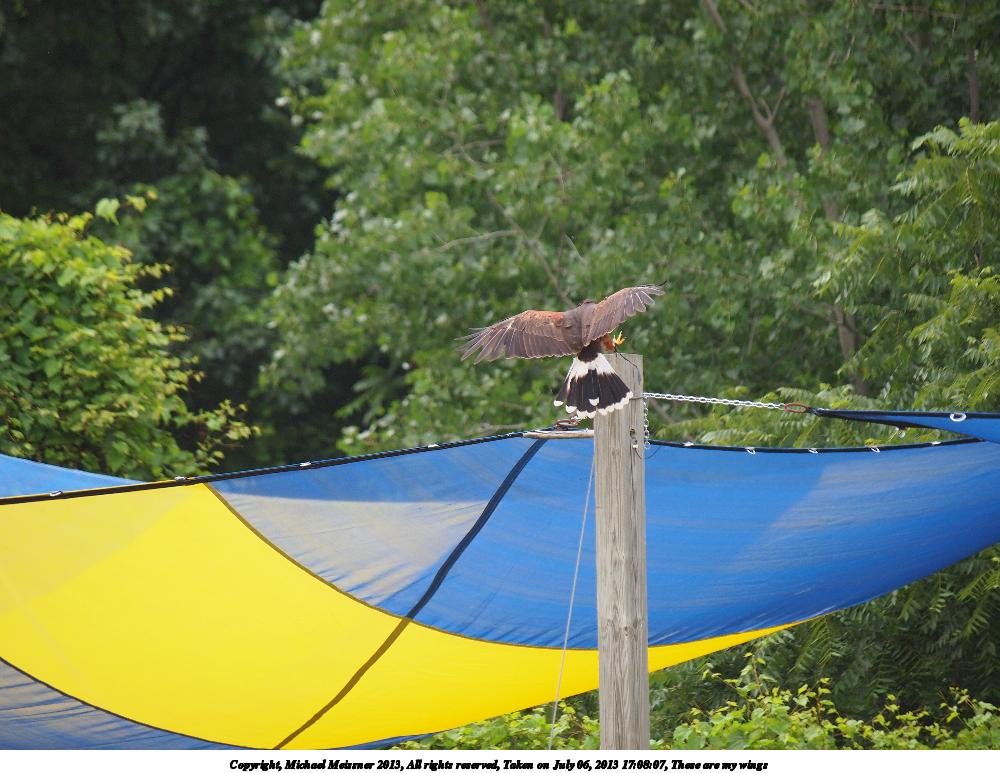 Picture #9: These are my wings Thumb: 500x375, 55,017 bytes (54K) Small: 1000x773, 132,575 bytes (130K), (html file) Large: 4000x3000, 5,264,896 bytes (5.0M), (html file) Copyright, Michael Meissner 2013, All rights reserved Olympus E-5 camera with Olympus 50-200mm lens f/3.4, ISO 500, 1/1250 sec, 182.0mm, shutter priority, vivid color, matrix metering, continous focus, IS1 (All Direction Shake IS) 35mm equivalent focal length 365.0mm Programs used: crop Taken by Michael Meissner on July 06, 2013 17:08:07 Last modified on December 03, 2013 at 23:29 |