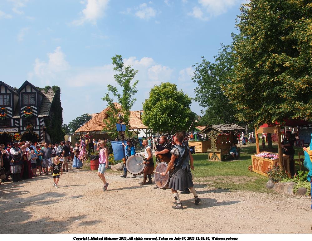 Picture #5: Welcome patrons #2 Thumb: 500x375, 60,778 bytes (60K) Small: 1000x773, 212,146 bytes (208K), (html file) Large: 4000x3000, 6,420,047 bytes (6.1M), (html file) Copyright, Michael Meissner 2013, All rights reserved Olympus E-5 camera with Olympus 14-54mm f/2.8-3.5 lens f/7.1, ISO 200, 1/500 sec, 14.0mm, auto mode, vivid color, matrix metering, IS1 (All Direction Shake IS) 35mm equivalent focal length 28.0mm Programs used: crop Taken by Michael Meissner on July 07, 2013 11:01:16 Last modified on December 05, 2013 at 00:22 |