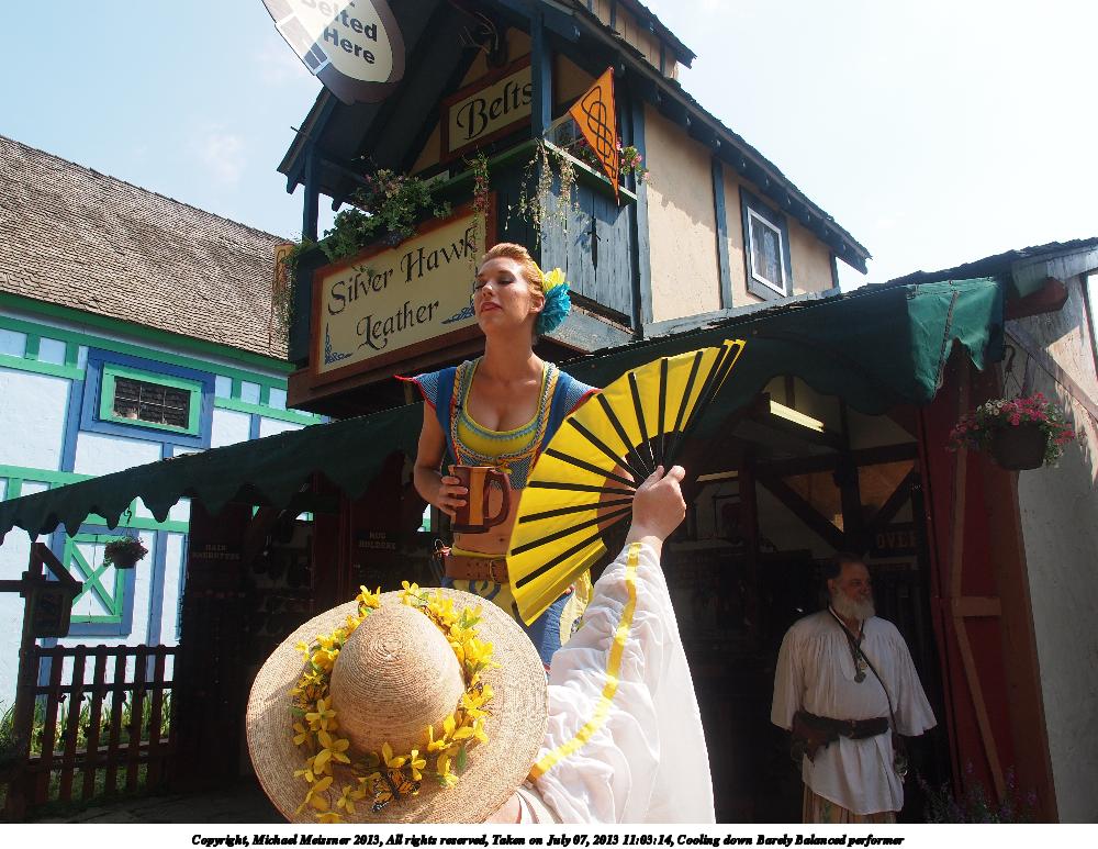 Picture #30: Cooling down Barely Balanced performer Thumb: 500x375, 55,078 bytes (54K) Small: 1000x773, 157,887 bytes (155K), (html file) Large: 4000x3000, 5,583,884 bytes (5.3M), (html file) Copyright, Michael Meissner 2013, All rights reserved Olympus E-5 camera with Olympus 14-54mm f/2.8-3.5 lens f/6.3, ISO 200, 1/400 sec, 14.0mm, auto mode, vivid color, matrix metering, IS1 (All Direction Shake IS) 35mm equivalent focal length 28.0mm Programs used: crop Taken by Michael Meissner on July 07, 2013 11:03:14 Last modified on December 05, 2013 at 00:23 |