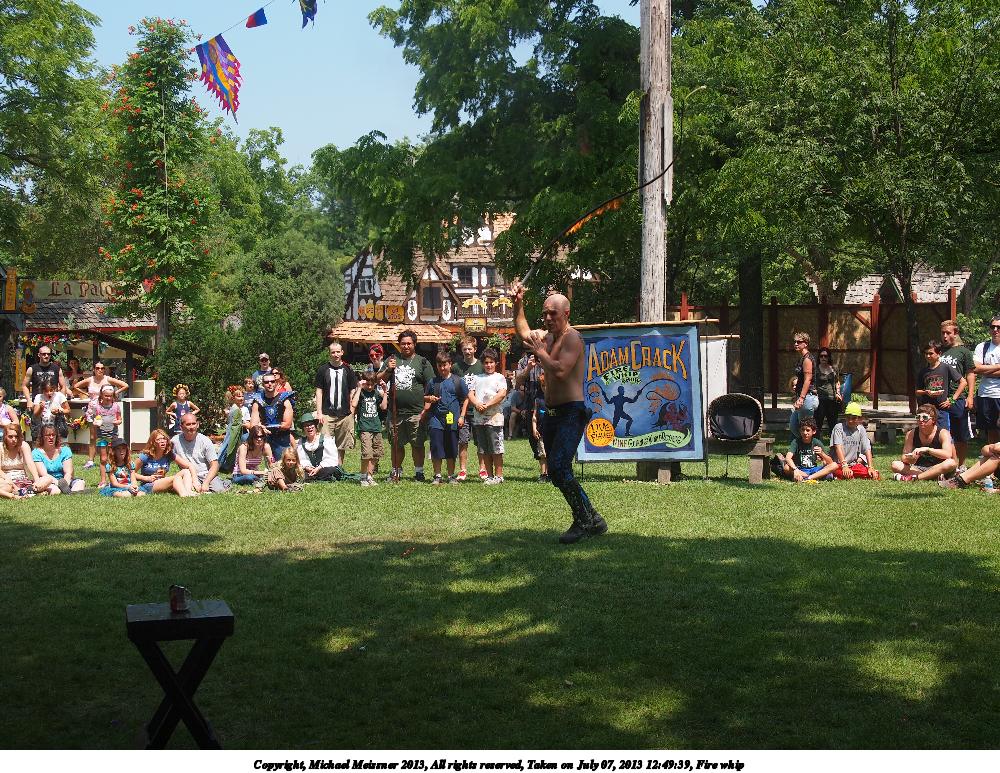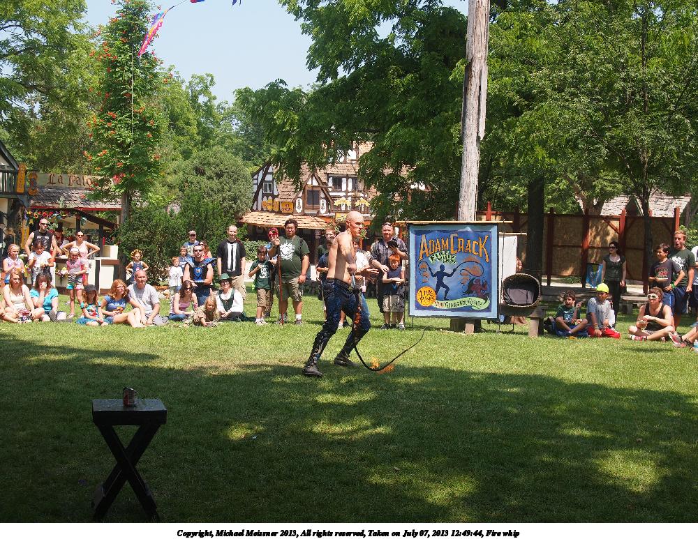 Picture #6: Fire whip #3 Thumb: 480x360, 74,589 bytes (73K) Small: 800x623, 172,475 bytes (169K), (html file) Large: 2400x1800, 3,655,335 bytes (3.5M), (html file) Copyright, Michael Meissner 2013, All rights reserved Olympus E-5 camera with Olympus 14-54mm f/2.8-3.5 lens f/3.5, ISO 200, 1/1000 sec, 23.0mm, shutter priority, vivid color, matrix metering, IS1 (All Direction Shake IS) 35mm equivalent focal length 46.0mm Programs used: crop, gimp Taken by Michael Meissner on July 07, 2013 12:49:46 Last modified on December 05, 2013 at 00:27 |