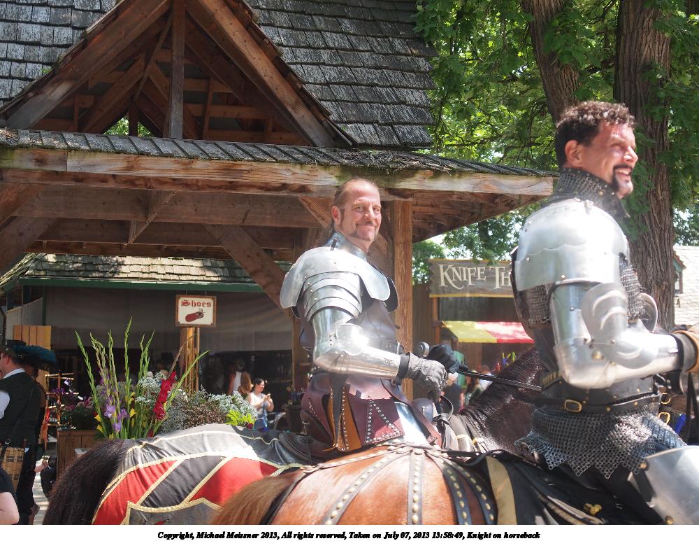 Picture #1: Knight on horseback Thumb: 500x375, 70,511 bytes (69K) Small: 1000x773, 219,266 bytes (215K), (html file) Large: 4000x3000, 6,351,566 bytes (6.1M), (html file) Copyright, Michael Meissner 2013, All rights reserved Olympus E-5 camera with Olympus 14-54mm f/2.8-3.5 lens f/3.2, ISO 200, 1/1000 sec, 33.0mm, shutter priority, vivid color, matrix metering, IS1 (All Direction Shake IS) 35mm equivalent focal length 66.0mm Programs used: crop Taken by Michael Meissner on July 07, 2013 13:58:40 Last modified on December 05, 2013 at 00:31 |