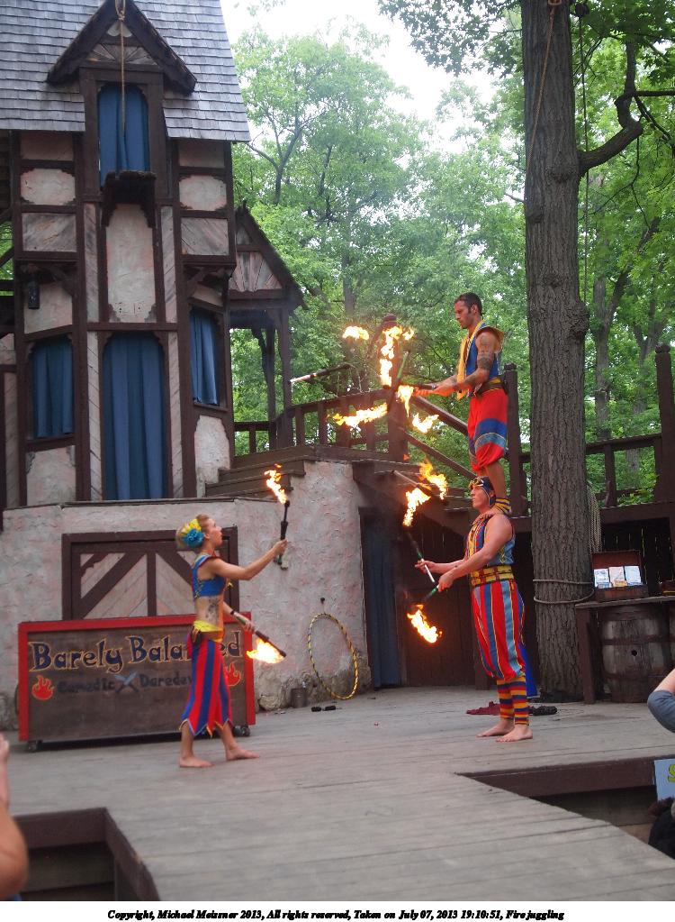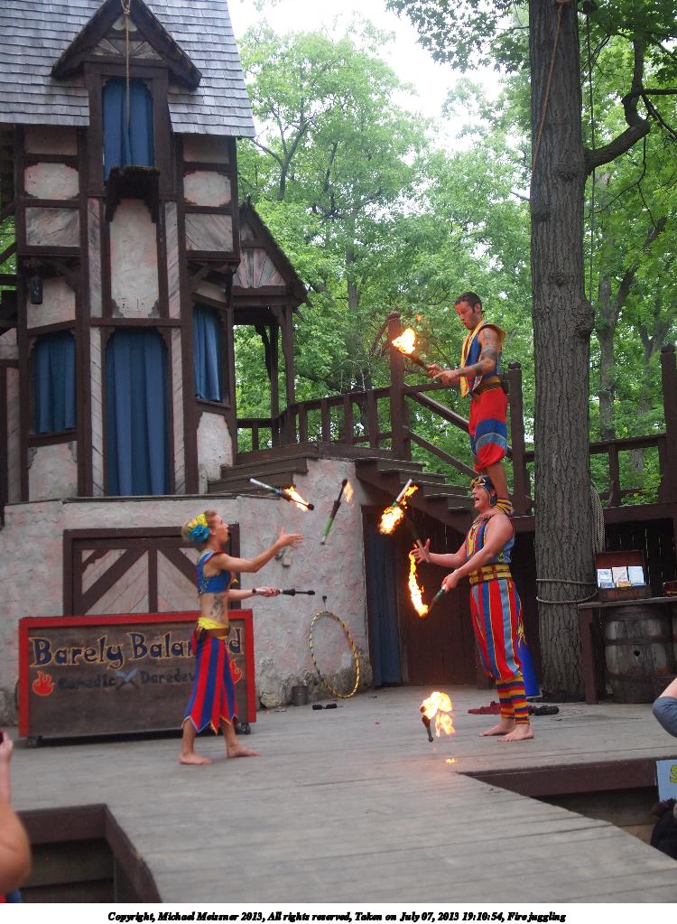 Picture #15: Fire juggling Thumb: 375x500, 62,134 bytes (61K) Small: 750x1023, 190,008 bytes (186K), (html file) Large: 3000x4000, 6,413,241 bytes (6.1M), (html file) Copyright, Michael Meissner 2013, All rights reserved Olympus E-5 camera with Olympus 14-54mm f/2.8-3.5 lens f/3.2, ISO 400, 1/250 sec, 23.0mm, shutter priority, vivid color, matrix metering, IS1 (All Direction Shake IS) 35mm equivalent focal length 46.0mm Programs used: crop, rotate left Taken by Michael Meissner on July 07, 2013 19:02:26 Last modified on December 05, 2013 at 00:51 |