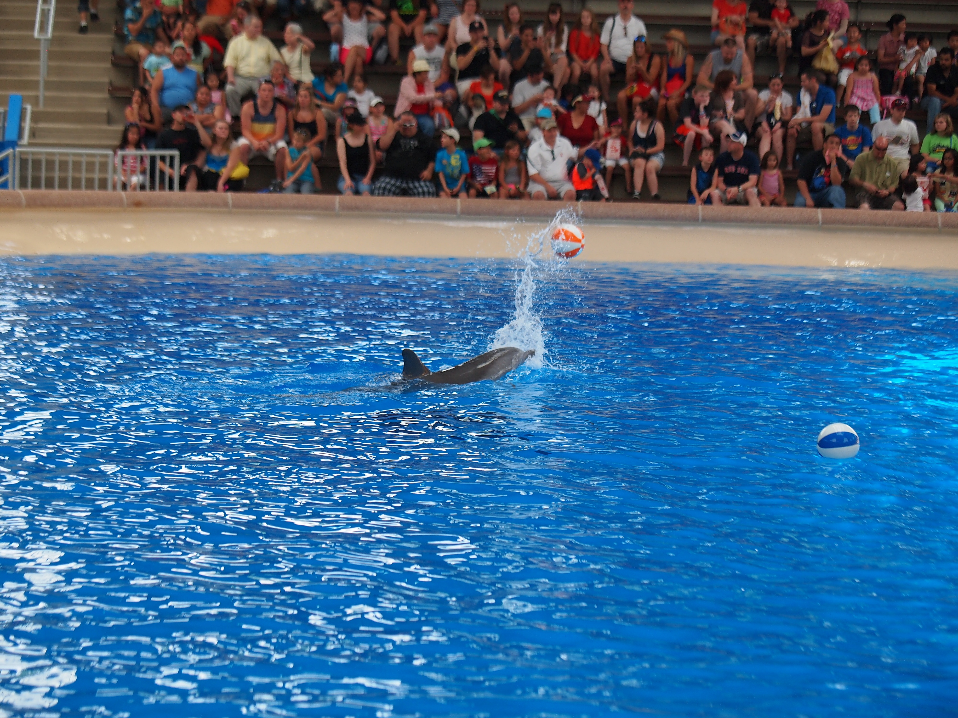 Picture #99: Dolphin show #9 Small: 1000x773, 215,068 bytes (211K), (html file) Large: 4000x3000, 4,253,059 bytes (4.1M), (html file) Copyright, Michael Meissner 2013, All rights reserved Olympus E-5 camera with Olympus 50-200mm lens f/2.8, ISO 800, 1/800 sec, 50.0mm, shutter priority, vivid color, center weight metering, IS1 (All Direction Shake IS) 35mm equivalent focal length 100.0mm Programs used: adjusttime, crop, raw therapee Taken by Michael Meissner on July 04, 2013 13:00:39 Last modified on July 14, 2013 at 20:42 This picture is one of my favorites. |