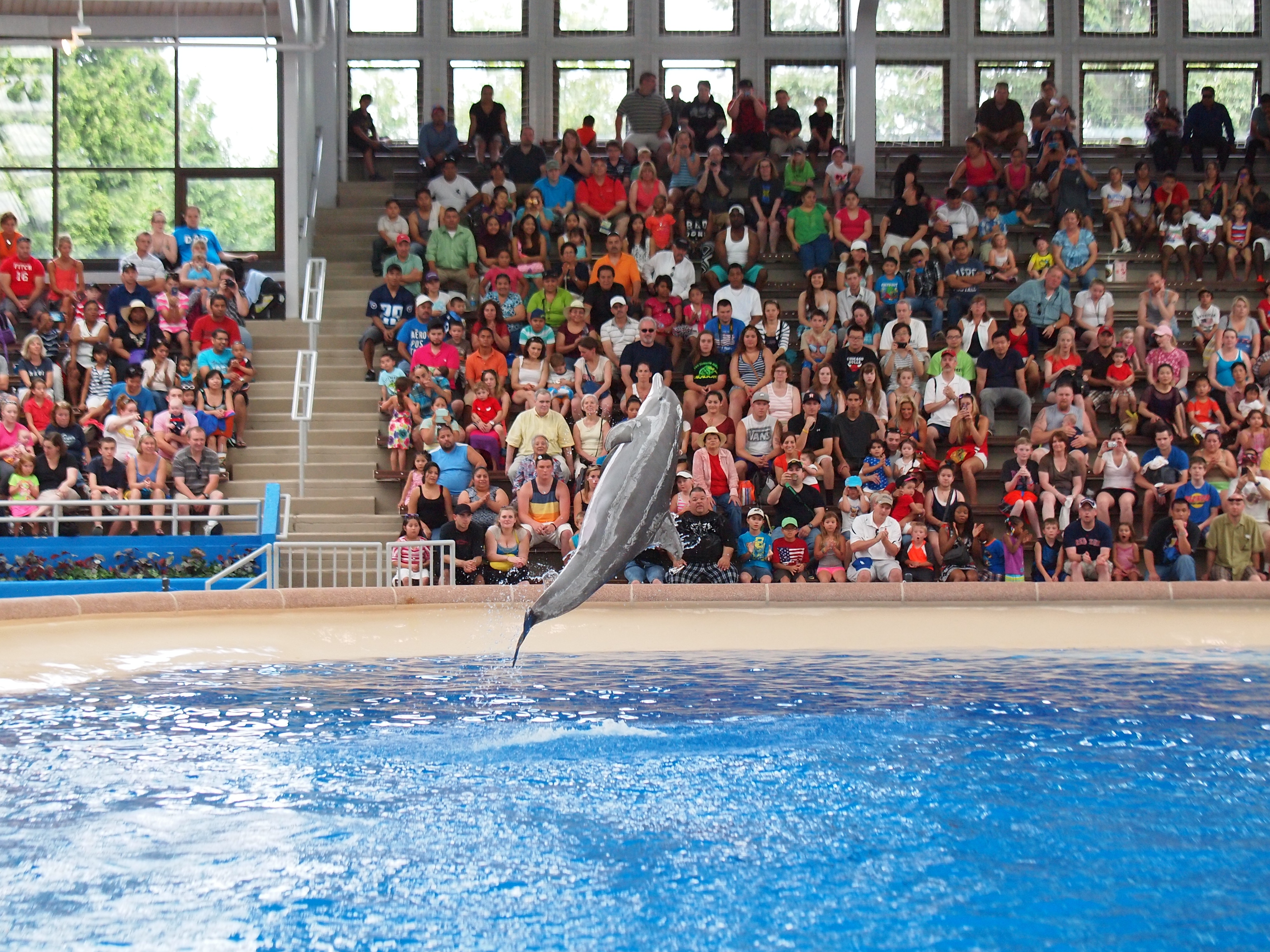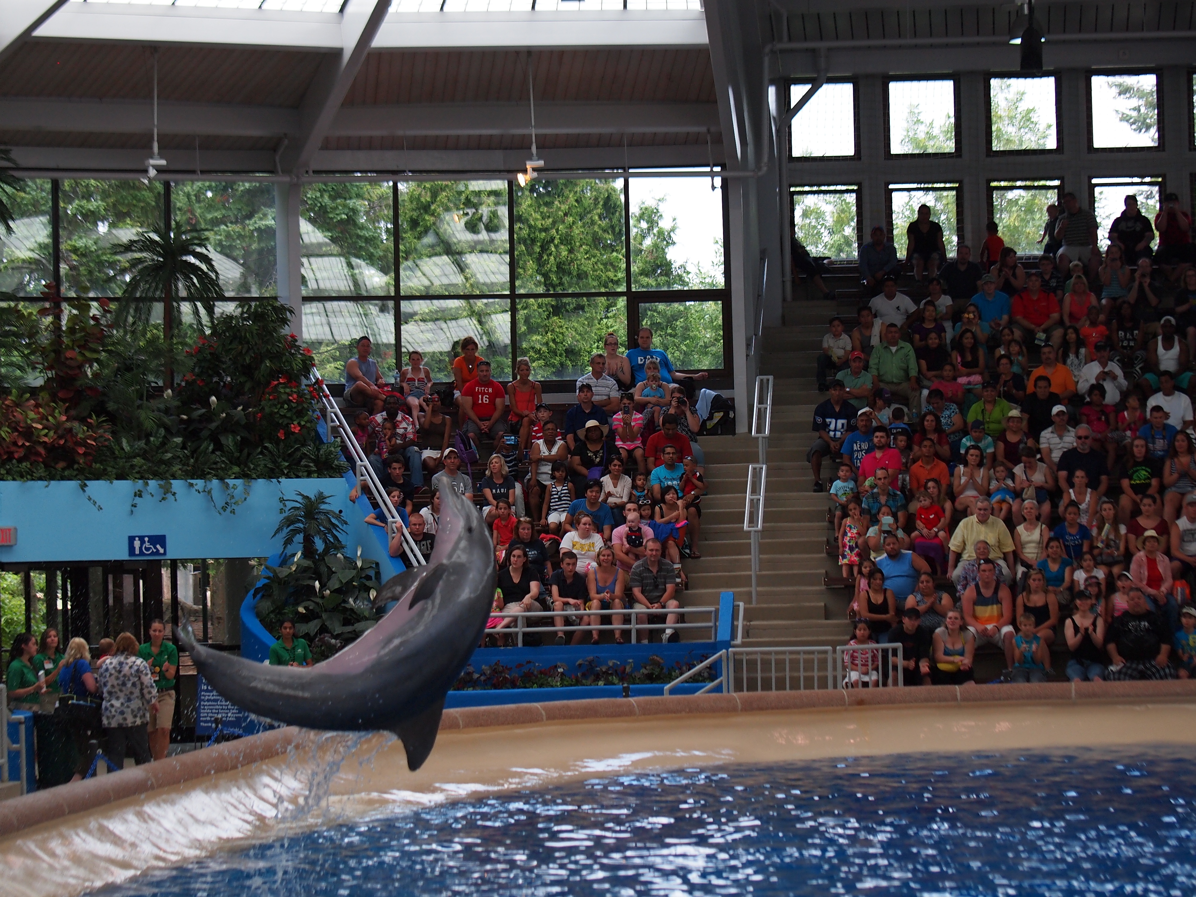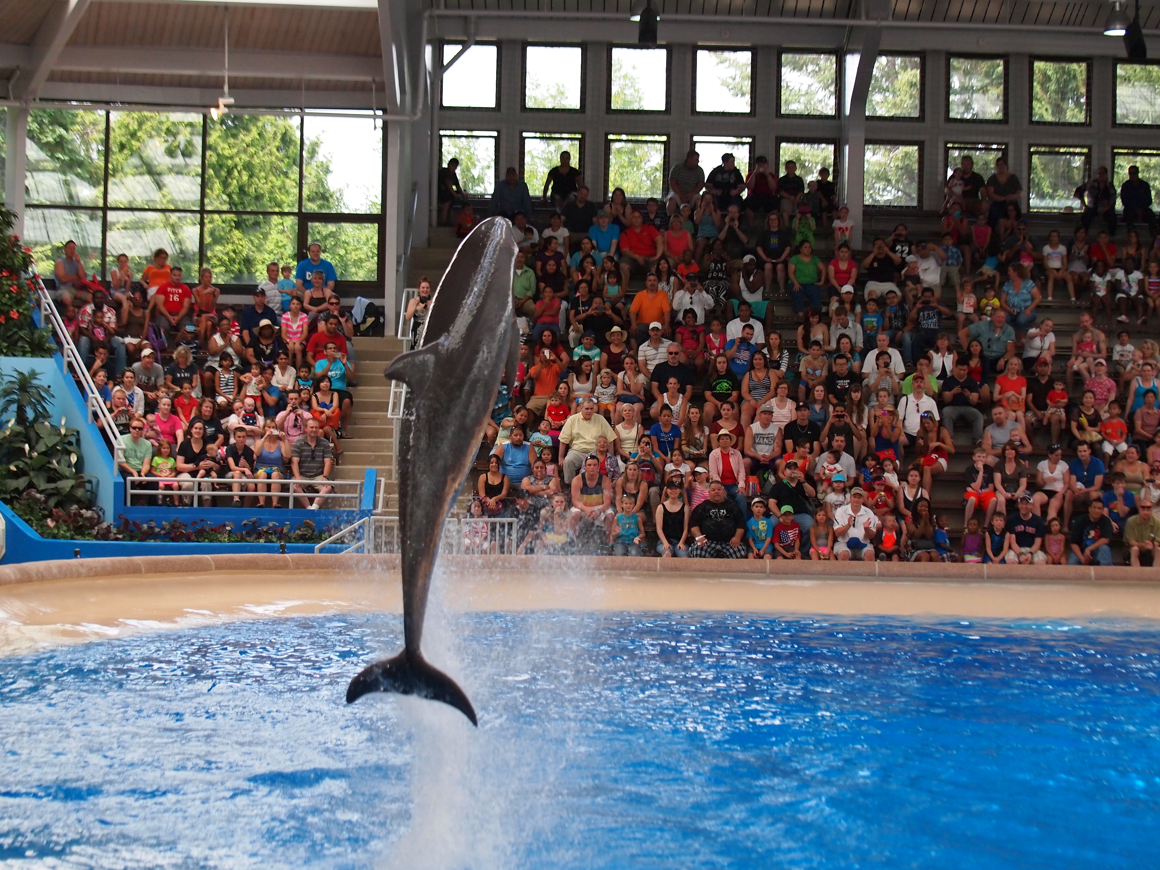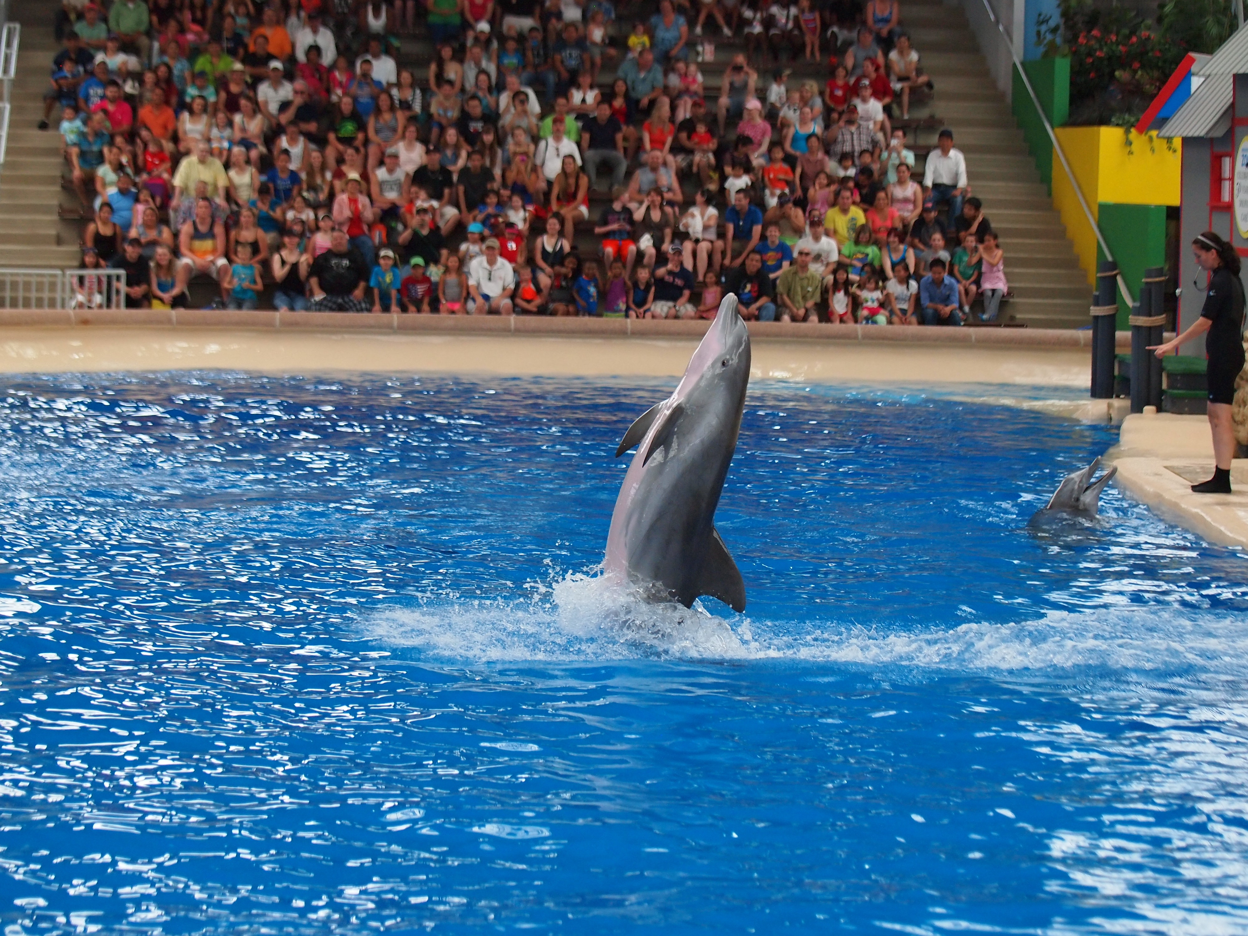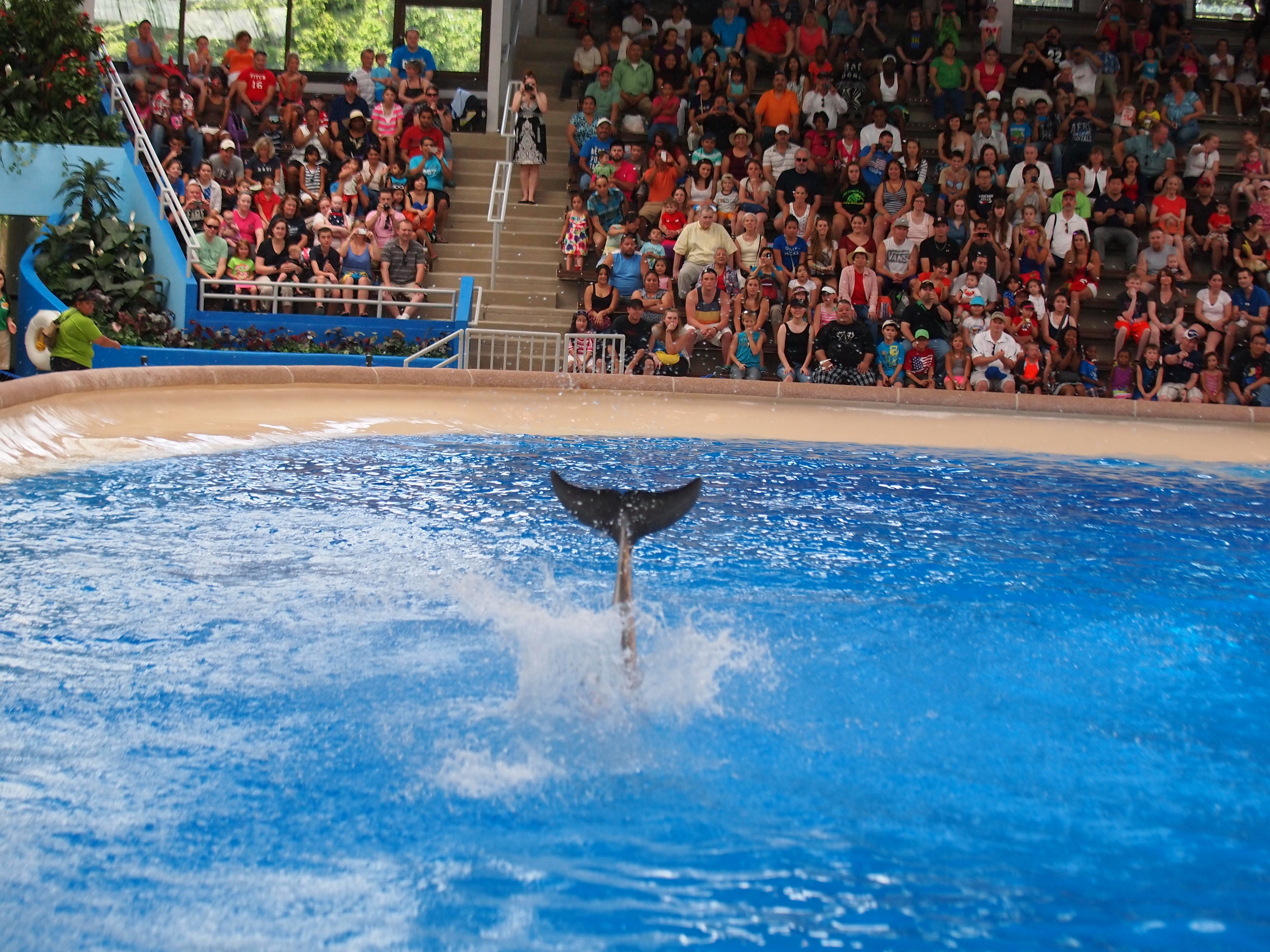 Picture #70: Dolphin show #35 Small: 1000x773, 224,139 bytes (219K), (html file) Large: 4000x3000, 4,385,498 bytes (4.2M), (html file) Copyright, Michael Meissner 2013, All rights reserved Olympus E-5 camera with Olympus 50-200mm lens f/2.8, ISO 1250, 1/500 sec, 57.0mm, shutter priority, vivid color, center weight metering, IS1 (All Direction Shake IS) 35mm equivalent focal length 114.0mm Programs used: adjusttime, crop, raw therapee Taken by Michael Meissner on July 04, 2013 13:19:35 Last modified on July 14, 2013 at 20:50 |