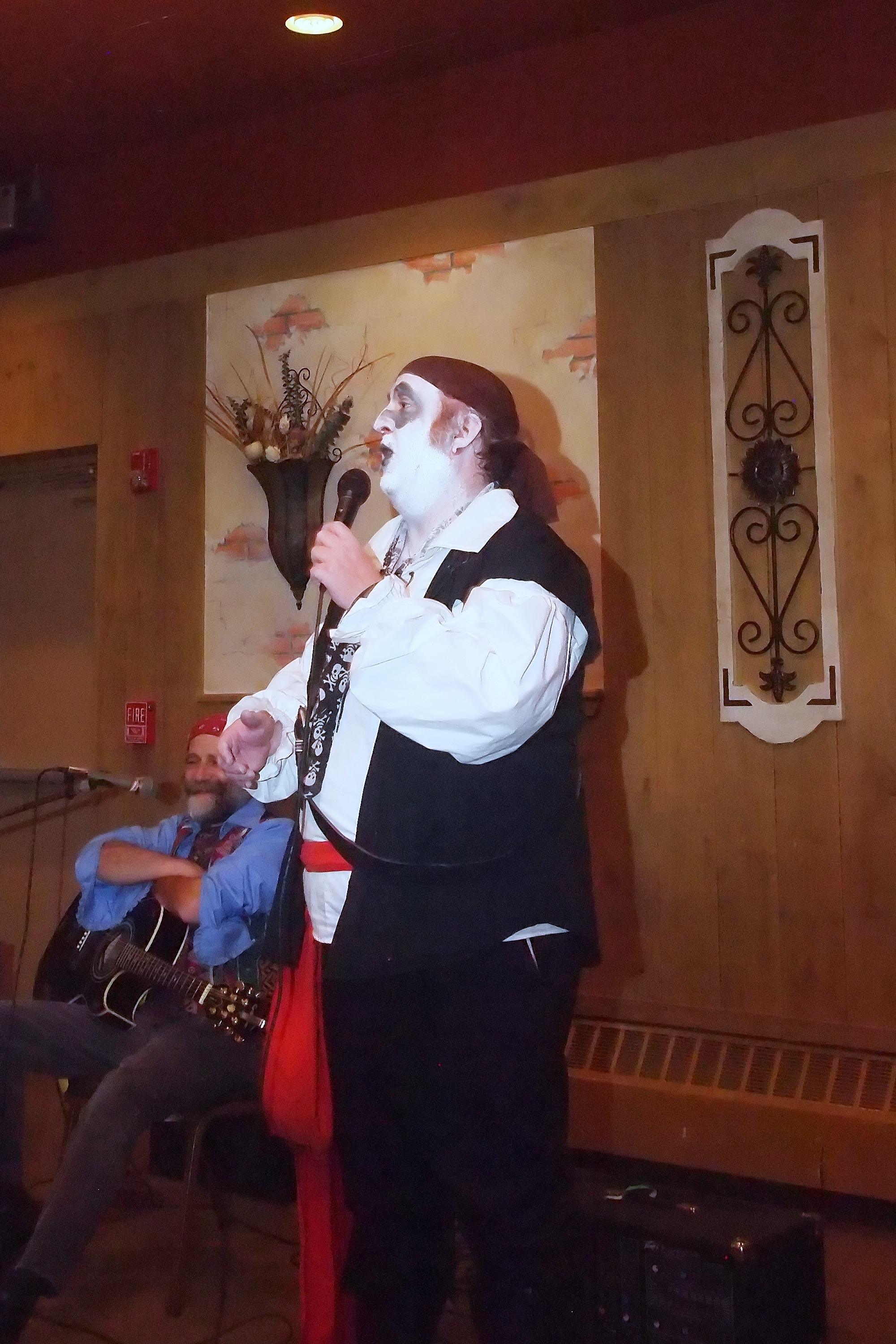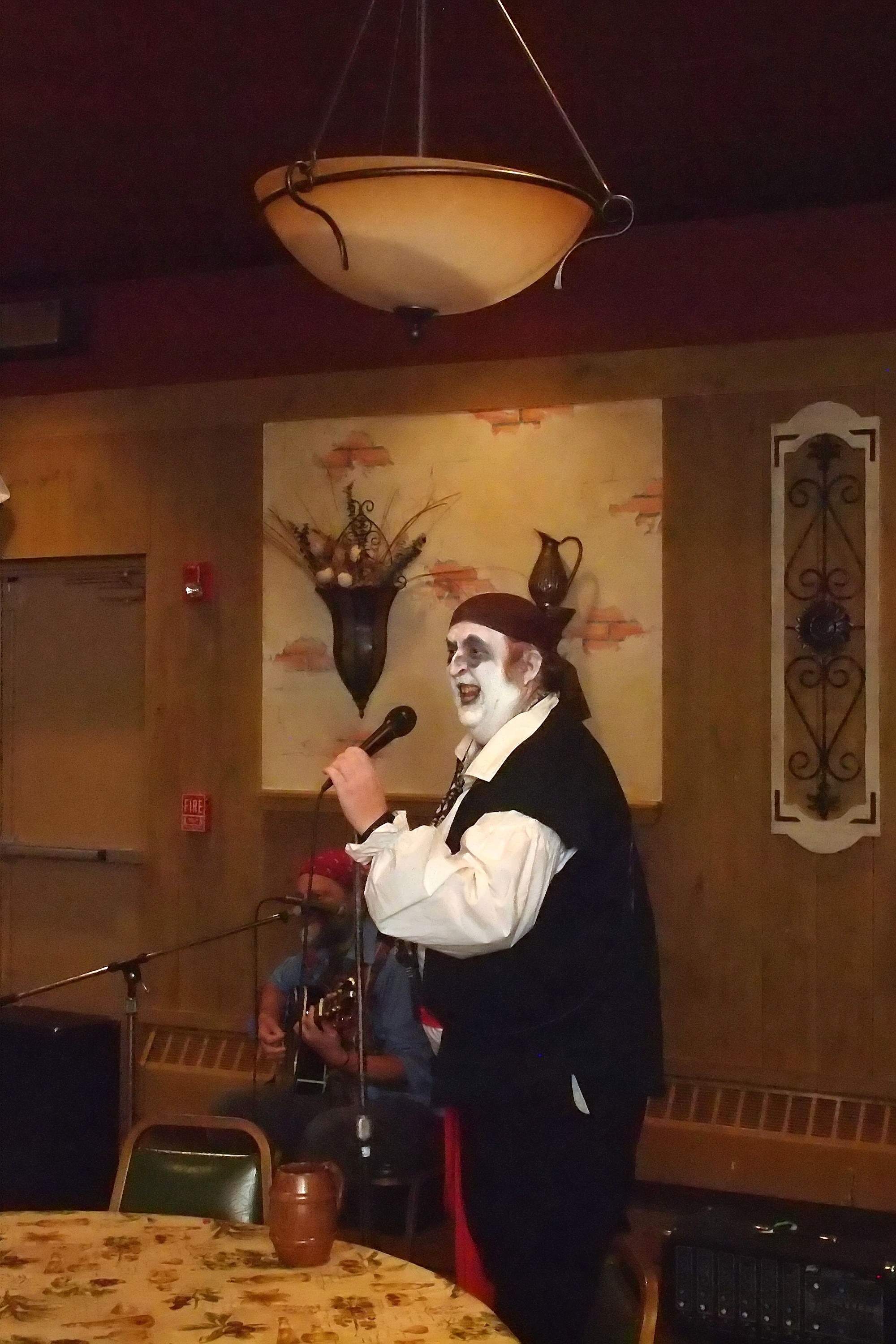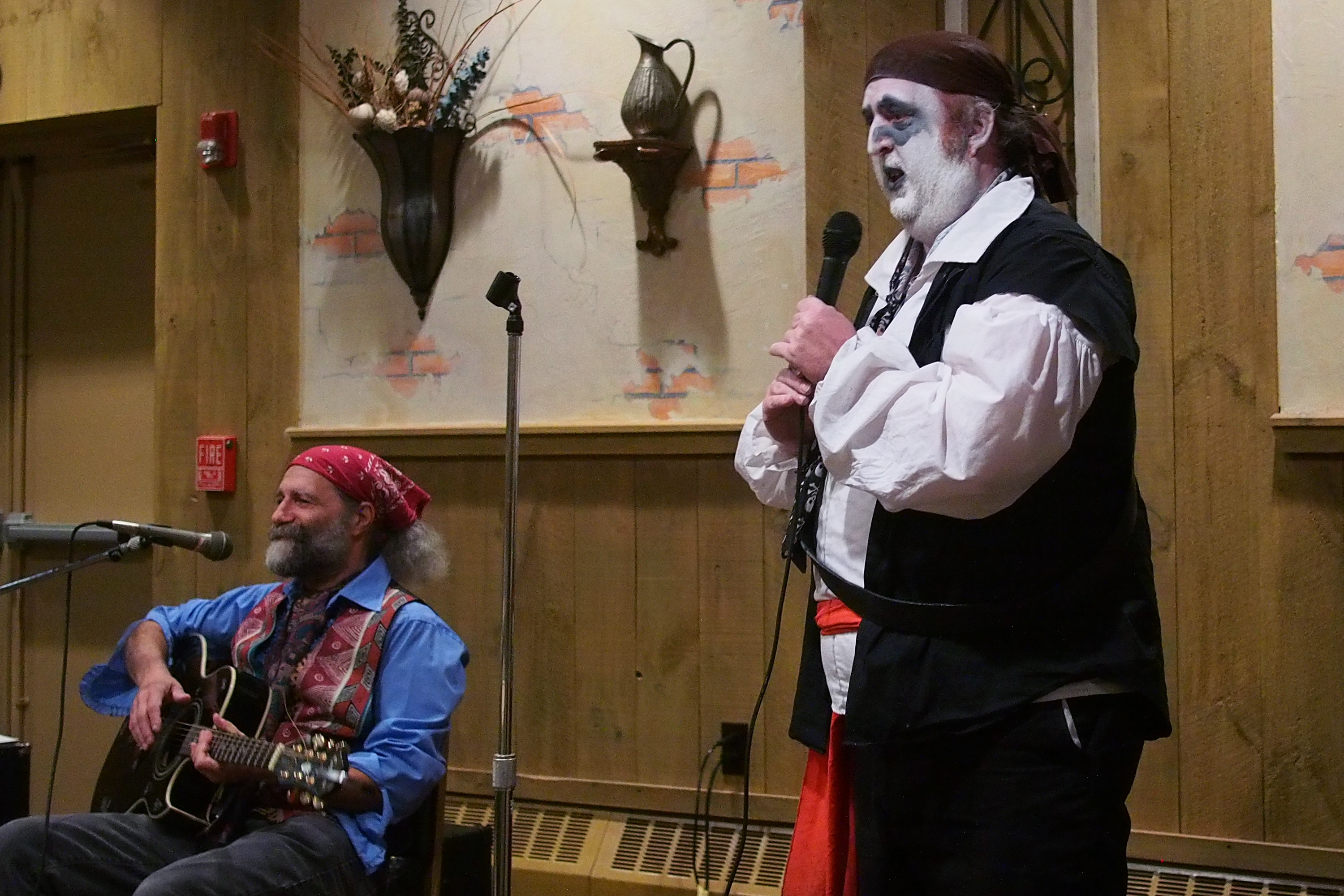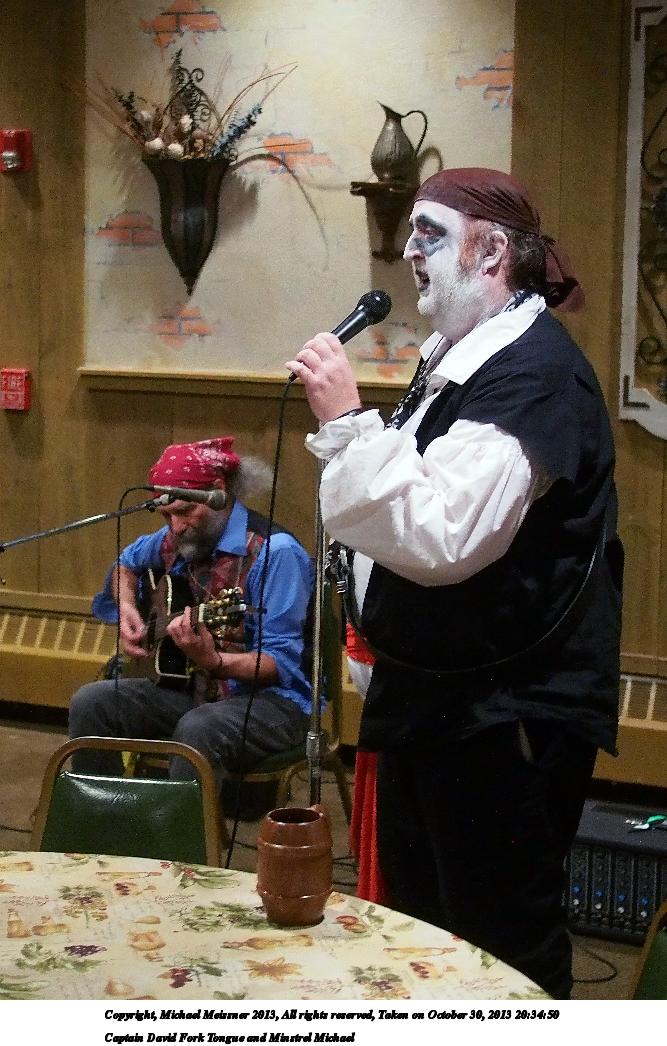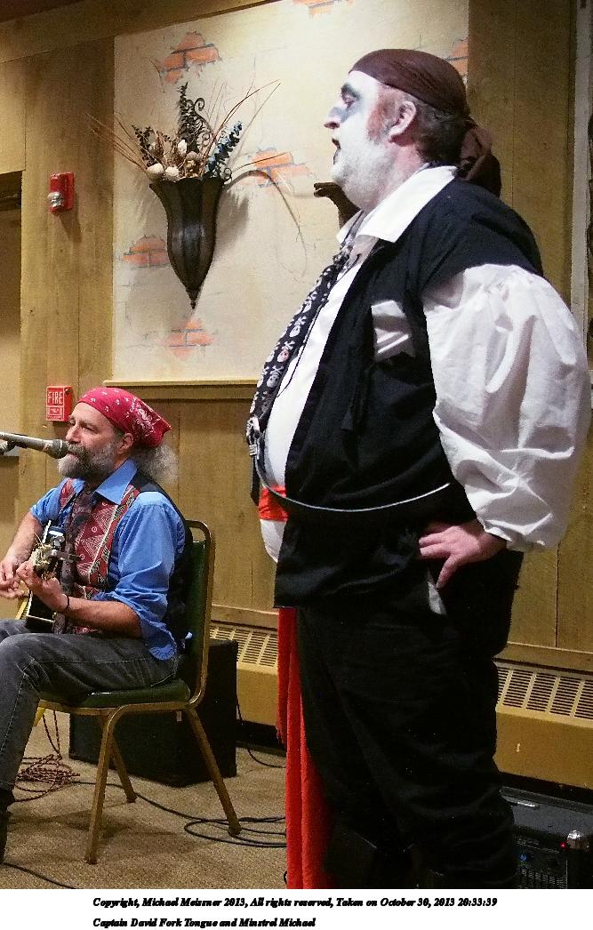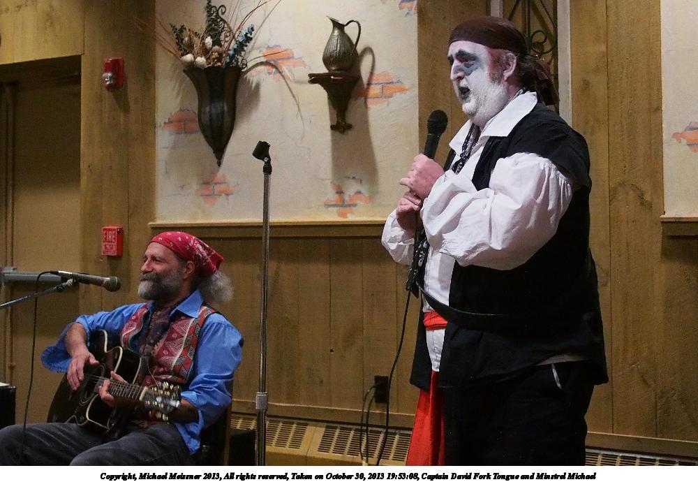 Picture #38: Captain David Fork Tongue and Minstrel Michael #2 Small: 667x1046, 148,929 bytes (146K), (html file) Large: 2000x3000, 4,613,973 bytes (4.4M), (html file) Copyright, Michael Meissner 2013, All rights reserved Olympus E-PM2 camera with Panasonic 20mm lens f/1.7, ISO 3200, 1/60 sec, 20.0mm, auto mode, vivid color, matrix metering, bias 0.3, IS1 (All Direction Shake IS), noise filter low 35mm equivalent focal length 40.0mm Programs used: crop, gimp, raw therapee Taken by Michael Meissner on October 30, 2013 20:33:39 Last modified on February 16, 2014 at 22:47 |
