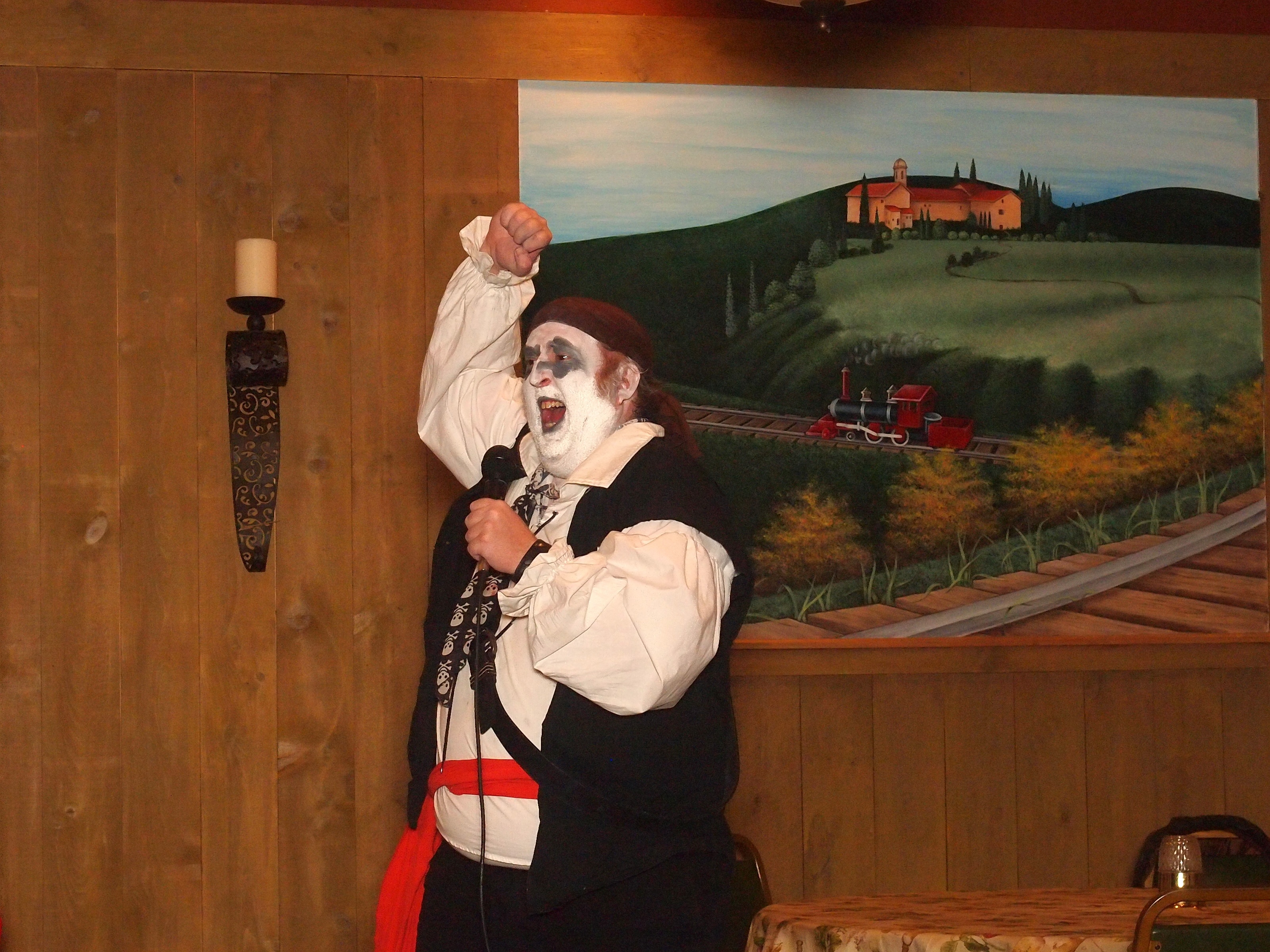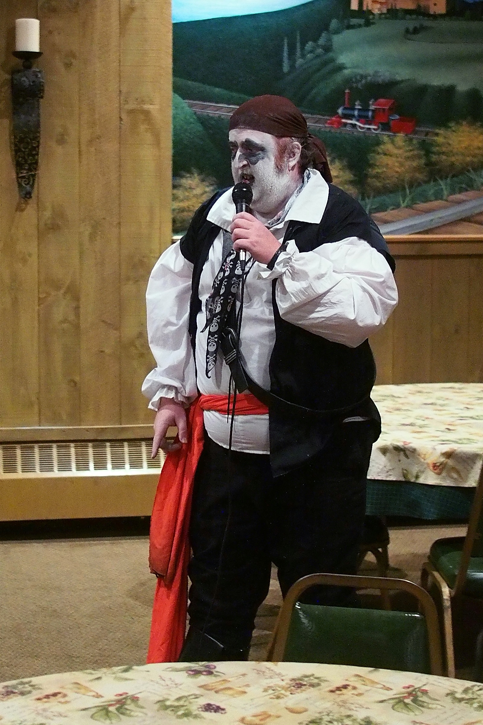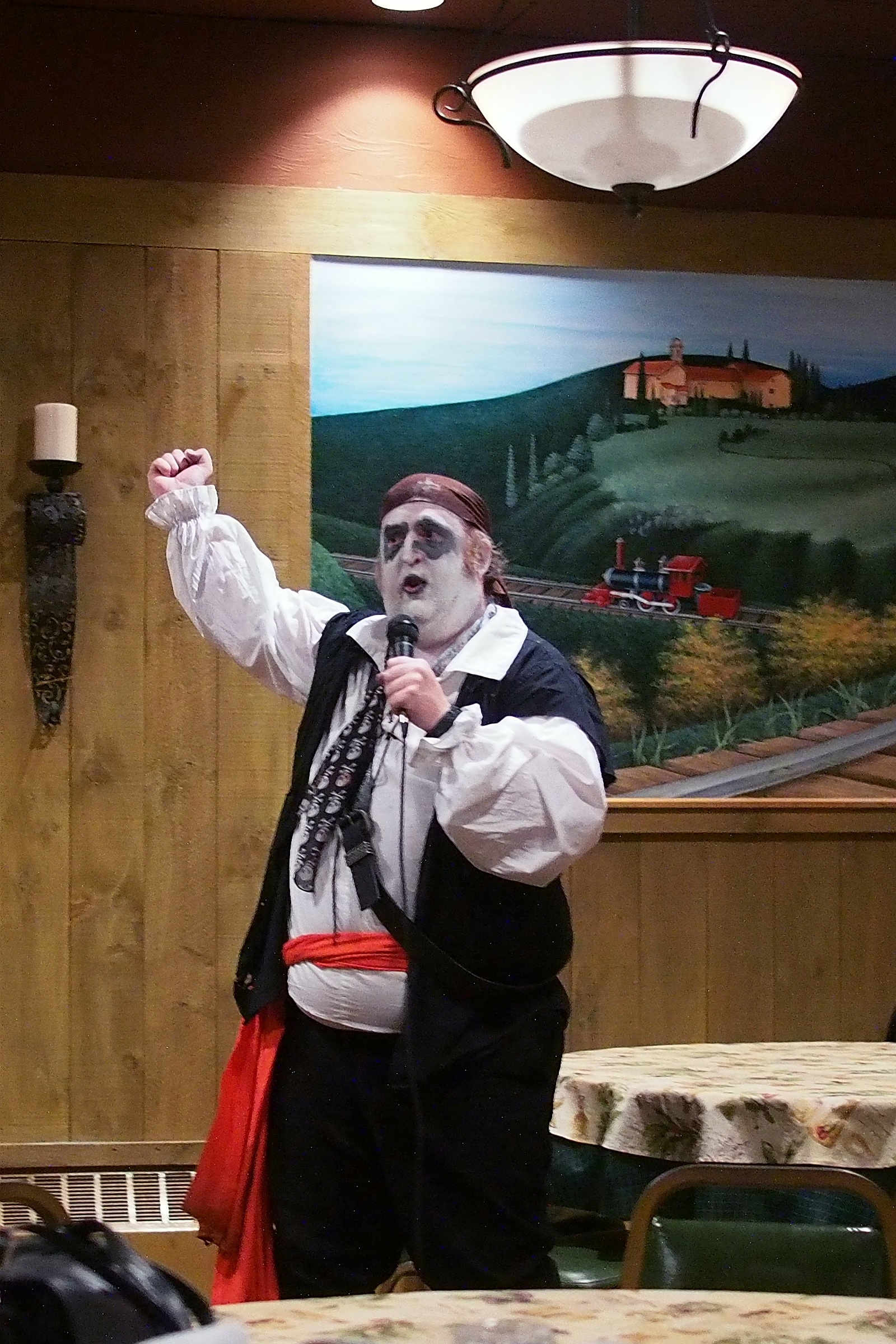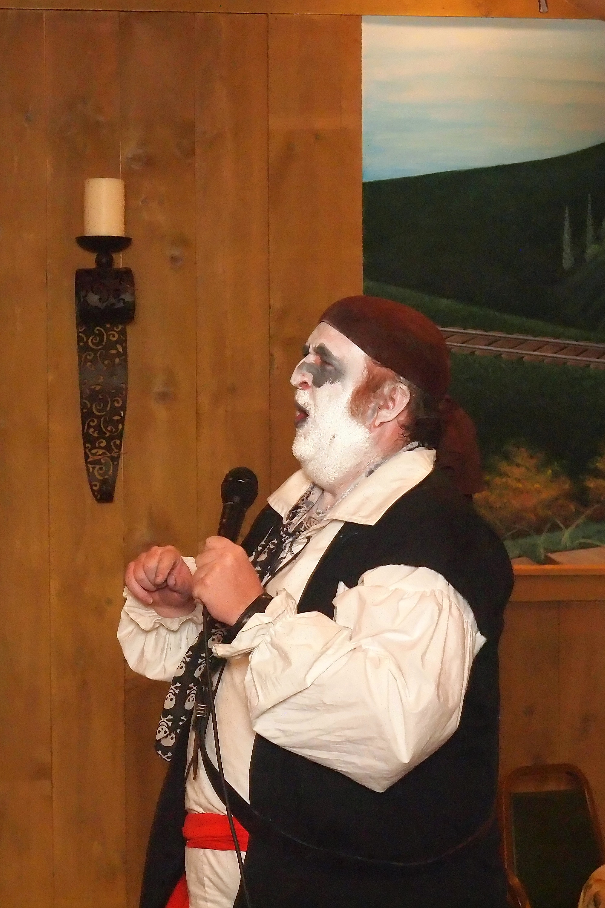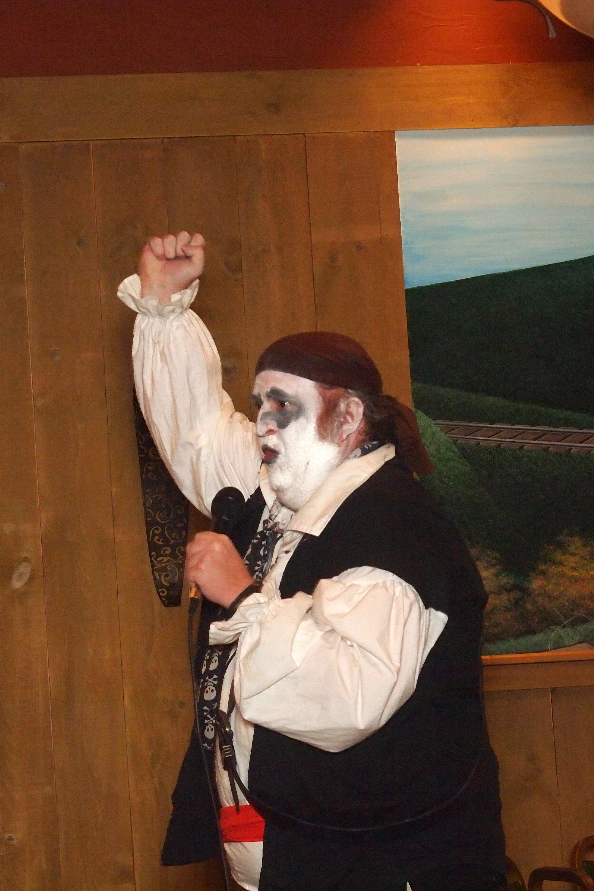 Picture #38: Captain David Fork Tongue and Minstrel Michael #2 Small: 667x1046, 148,929 bytes (146K), (html file) Large: 2000x3000, 4,613,973 bytes (4.4M), (html file) Copyright, Michael Meissner 2013, All rights reserved Olympus E-PM2 camera with Panasonic 20mm lens f/1.7, ISO 3200, 1/60 sec, 20.0mm, auto mode, vivid color, matrix metering, bias 0.3, IS1 (All Direction Shake IS), noise filter low 35mm equivalent focal length 40.0mm Programs used: crop, gimp, raw therapee Taken by Michael Meissner on October 30, 2013 20:33:39 Last modified on February 16, 2014 at 22:47 |