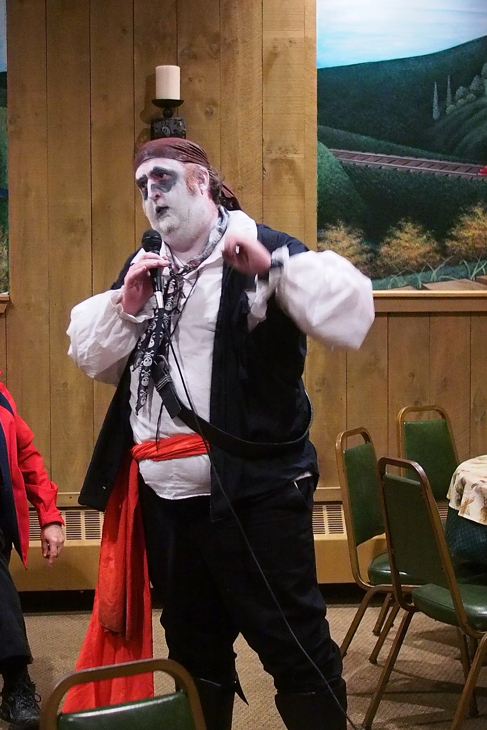 Picture #39: Captain David Fork Tongue and Minstrel Michael #3 Small: 667x1046, 136,337 bytes (134K), (html file) Large: 2000x3000, 2,158,124 bytes (2.1M), (html file) Copyright, Michael Meissner 2013, All rights reserved Olympus E-PM2 camera with Panasonic 20mm lens f/1.8, ISO 2500, 1/60 sec, 20.0mm, auto mode, vivid color, matrix metering, IS1 (All Direction Shake IS), noise filter low 35mm equivalent focal length 40.0mm Programs used: crop, raw therapee Taken by Michael Meissner on October 30, 2013 20:34:50 Last modified on February 16, 2014 at 22:47 |