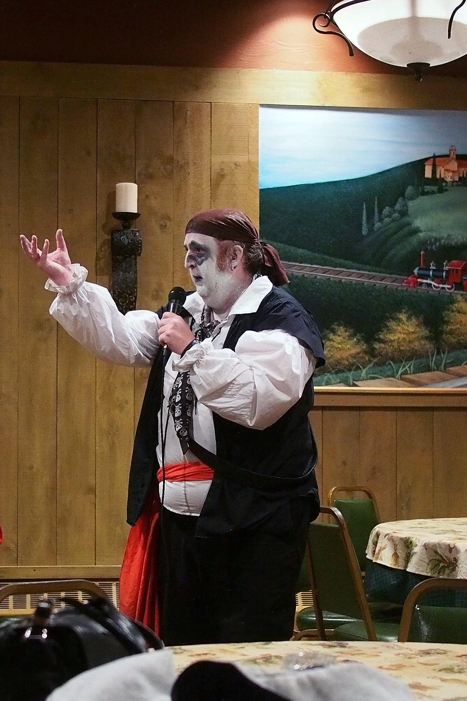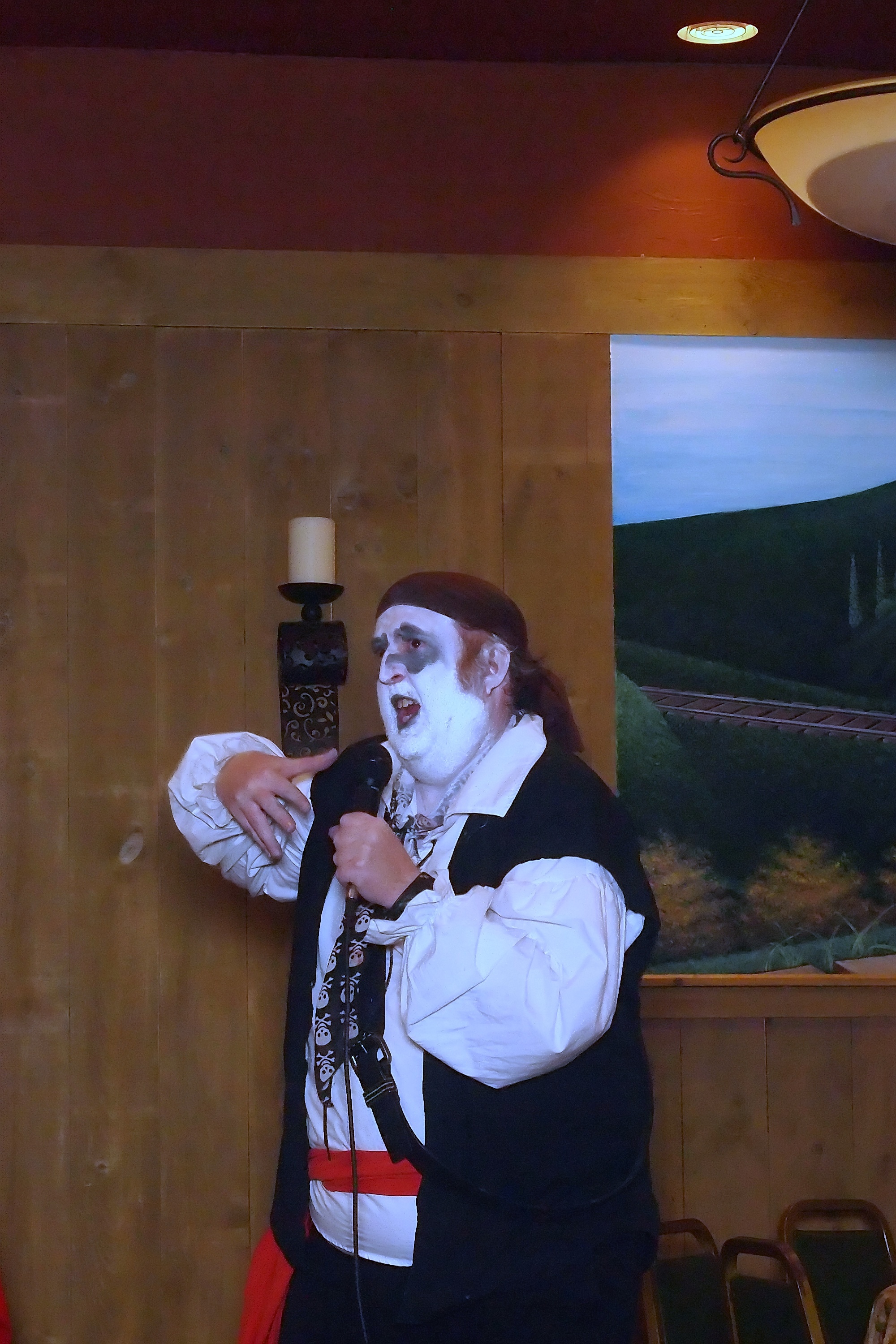 Picture #17: Captain David Fork Tongue and Minstrel Michael Small: 1000x690, 120,777 bytes (118K), (html file) Large: 3000x2000, 4,112,750 bytes (3.9M), (html file) Copyright, Michael Meissner 2013, All rights reserved Olympus E-PM2 camera with Panasonic 20mm lens f/1.7, ISO 2500, 1/60 sec, 20.0mm, auto mode, vivid color, matrix metering, IS1 (All Direction Shake IS), noise filter low 35mm equivalent focal length 40.0mm Programs used: gimp Taken by Michael Meissner on October 30, 2013 19:53:08 Last modified on February 16, 2014 at 22:34 |