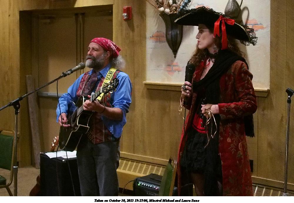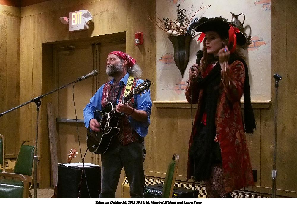 Picture #5: Minstrel Michael and Laura Sune #3 Small: 900x623, 109,741 bytes (108K), (html file) Large: 2700x1800, 3,667,188 bytes (3.5M), (html file) Copyright, Michael Meissner 2013, All rights reserved Olympus E-5 camera with Olympus 14-54mm f/2.8-3.5 lens f/5.6, ISO 3200, FL-36 flash (+0.3 flash compensation), 1/60 sec, 23.0mm, aperture priority, vivid color, matrix metering, IS1 (All Direction Shake IS) 35mm equivalent focal length 46.0mm Programs used: crop, gimp, noiseninja, raw therapee Taken by Michael Meissner on October 30, 2013 19:22:39 Last modified on February 16, 2014 at 21:11 |