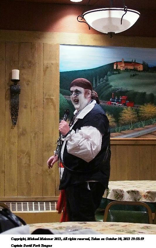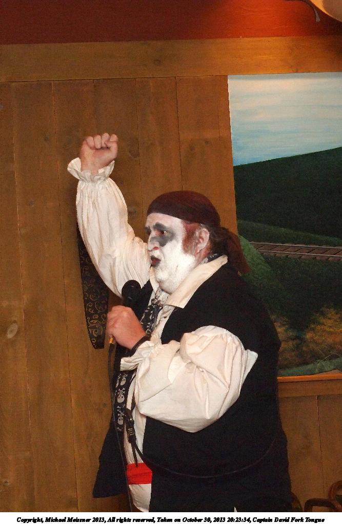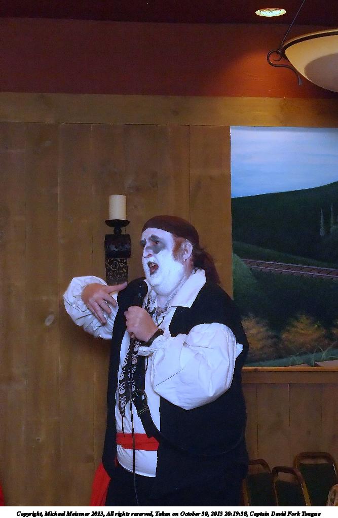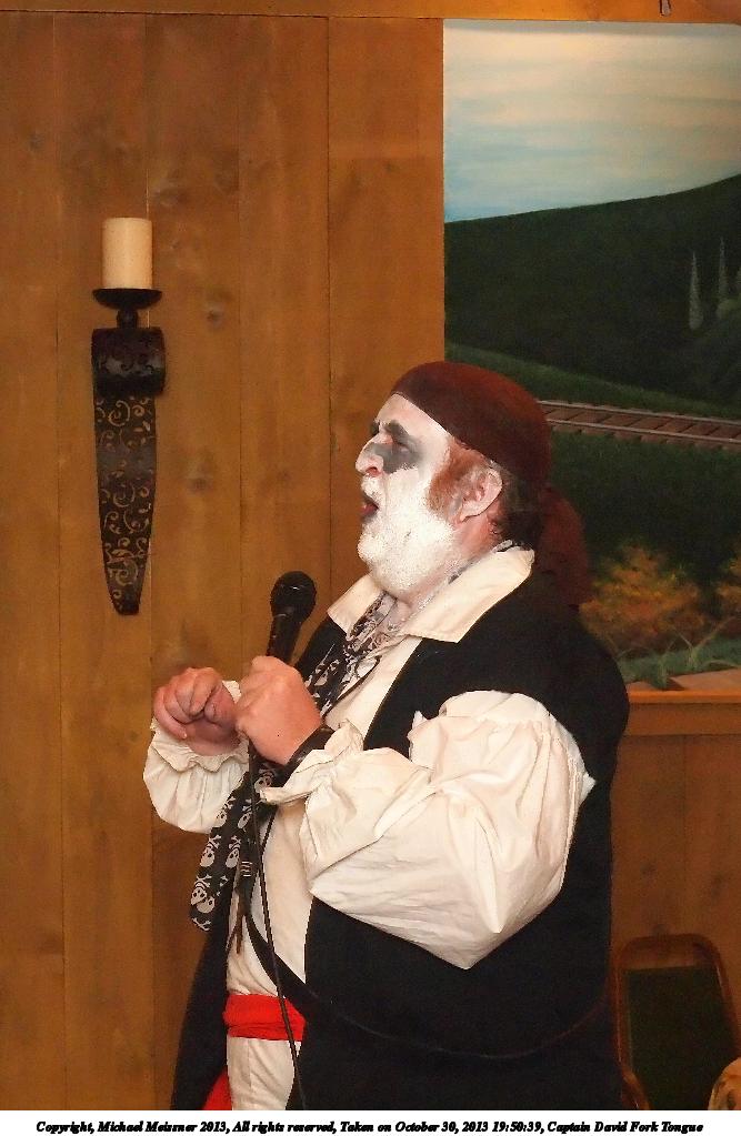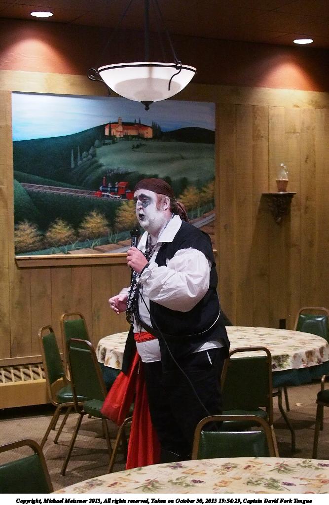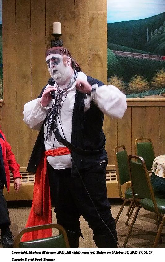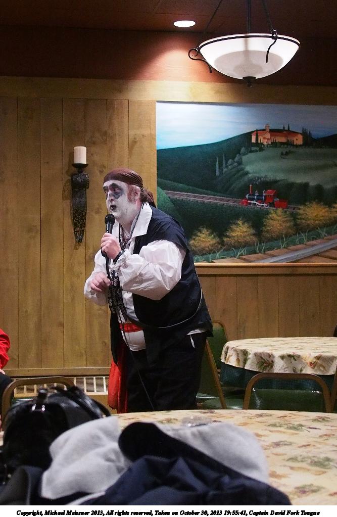 Picture #31: Captain David Fork Tongue #17 Small: 533x846, 82,887 bytes (81K), (html file) Large: 1600x2400, 1,261,835 bytes (1.2M), (html file) Copyright, Michael Meissner 2013, All rights reserved Olympus E-5 camera with Olympus 14-54mm f/2.8-3.5 lens f/5.6, ISO 1250, FL-36 flash (+0.3 flash compensation), 1/60 sec, 38.0mm, aperture priority, vivid color, matrix metering, IS1 (All Direction Shake IS) 35mm equivalent focal length 76.0mm Programs used: crop, raw therapee Taken by Michael Meissner on October 30, 2013 20:10:29 Last modified on February 16, 2014 at 22:44 |