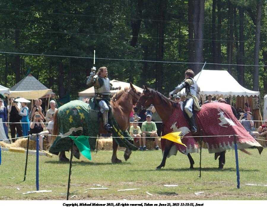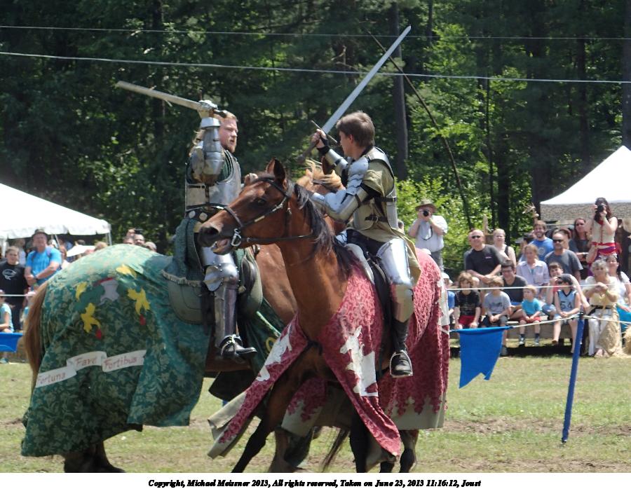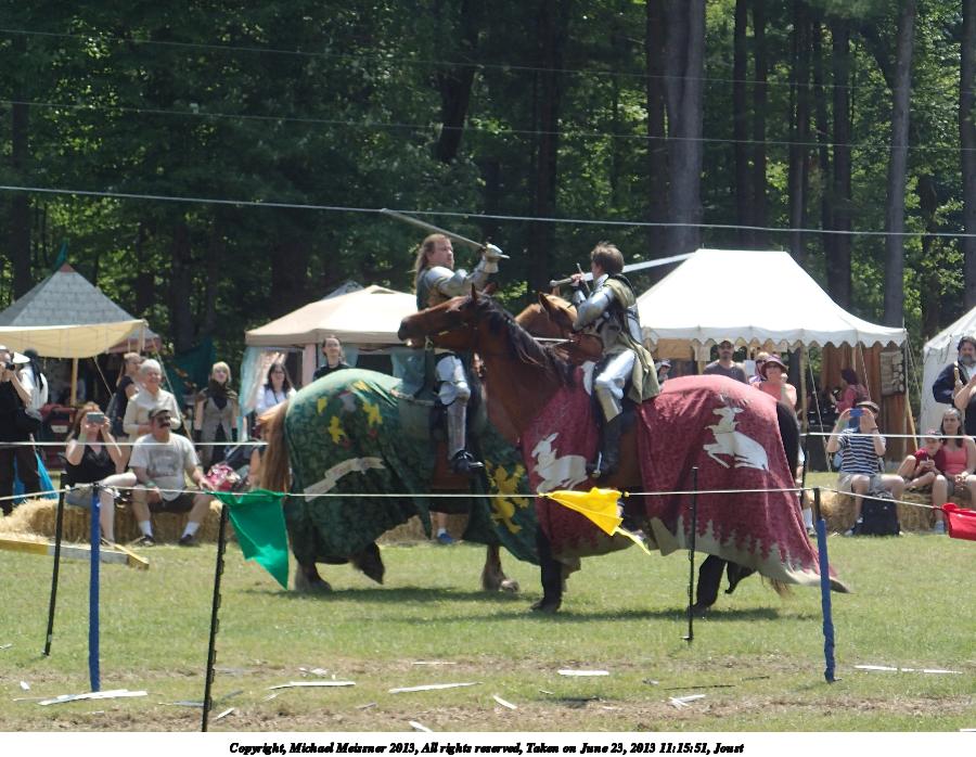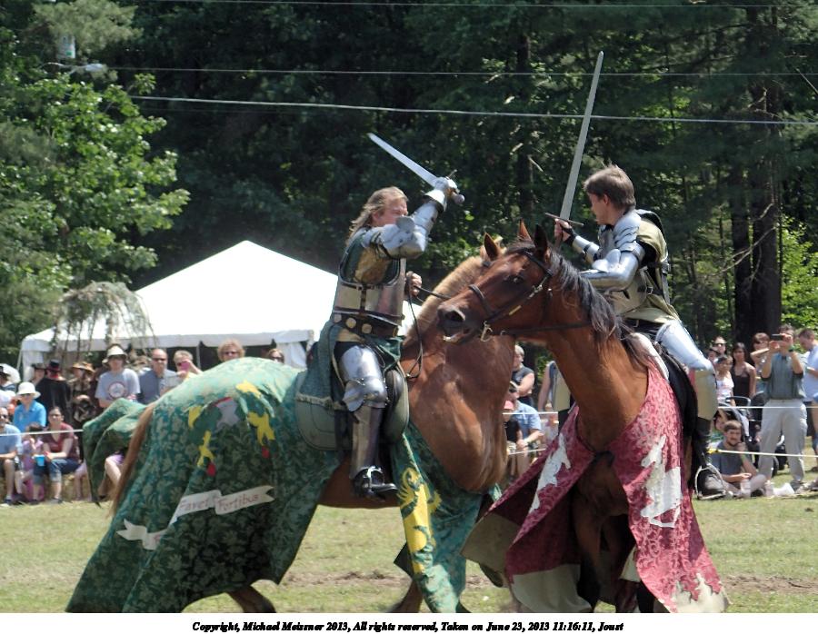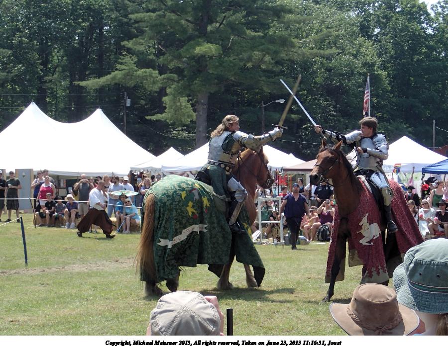 Picture #50: Joust #14 Small: 900x698, 136,997 bytes (134K), (html file) Large: 3600x2700, 2,281,503 bytes (2.2M), (html file) Copyright, Michael Meissner 2013, All rights reserved Olympus TG-2 camera f/4.9, ISO 100, 1/250 sec, 18.0mm, auto mode, HQ, matrix metering, image stabilization (mode 2), noise filter n/a 35mm equivalent focal length 100.0mm Programs used: crop, raw therapee Taken by Michael Meissner on June 23, 2013 11:16:12 Last modified on September 19, 2013 at 00:00 |