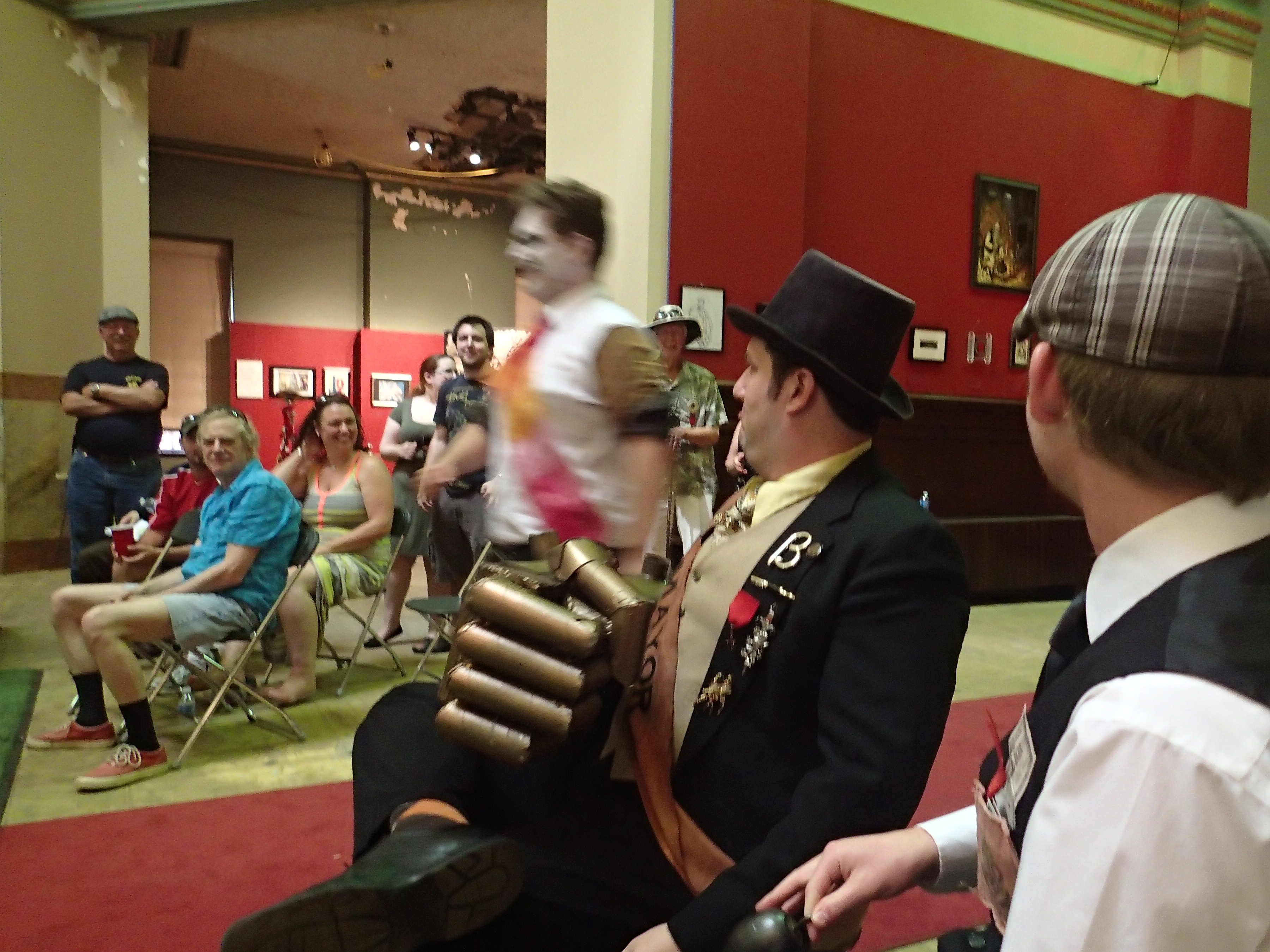 Picture #16: Show by the crew of the Dead Rabbit #2 Thumb: 450x338, 39,960 bytes (40K) Small: 900x698, 109,321 bytes (107K), (html file) Large: 3600x2700, 2,443,538 bytes (2.3M), (html file) Copyright, Michael Meissner 2013, All rights reserved Olympus TG-2 camera f/2.0, ISO 800, 1/30 sec, 4.5mm, auto mode, HQ, matrix metering, image stabilization (mode 2), noise filter n/a 35mm equivalent focal length 25.0mm Programs used: crop, raw therapee Taken by Michael Meissner on August 25, 2013 15:27:22 Last modified on February 17, 2014 at 09:39 |