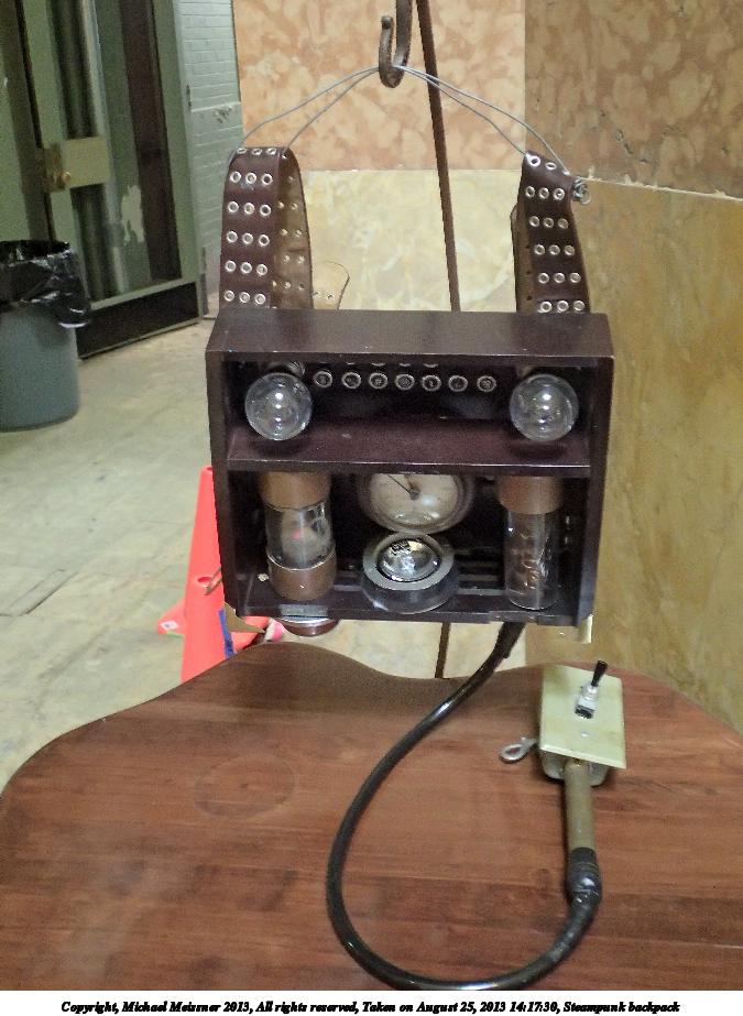 Picture #8: Steampunk backpack Thumb: 338x450, 38,950 bytes (39K) Small: 675x923, 104,335 bytes (102K), (html file) Large: 2700x3600, 2,528,544 bytes (2.4M), (html file) Copyright, Michael Meissner 2013, All rights reserved Olympus TG-2 camera f/2.6, ISO 800, 1/15 sec, 6.4mm, auto mode, HQ, matrix metering, image stabilization (mode 2), noise filter n/a 35mm equivalent focal length 35.0mm Programs used: crop, raw therapee, rotate left Taken by Michael Meissner on August 25, 2013 14:17:30 Last modified on February 17, 2014 at 09:35 |