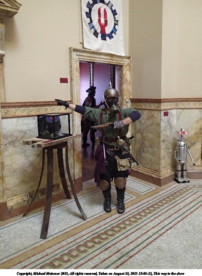 Picture #7: Steampunk warrior Thumb: 338x450, 34,908 bytes (35K) Small: 675x923, 92,869 bytes (91K), (html file) Large: 2700x3600, 2,430,717 bytes (2.3M), (html file) Copyright, Michael Meissner 2013, All rights reserved Olympus TG-2 camera f/2.6, ISO 800, 1/40 sec, 6.4mm, auto mode, HQ, matrix metering, image stabilization (mode 2), noise filter n/a 35mm equivalent focal length 35.0mm Programs used: crop, raw therapee, rotate left Taken by Michael Meissner on August 25, 2013 14:07:21 Last modified on February 17, 2014 at 09:35 |