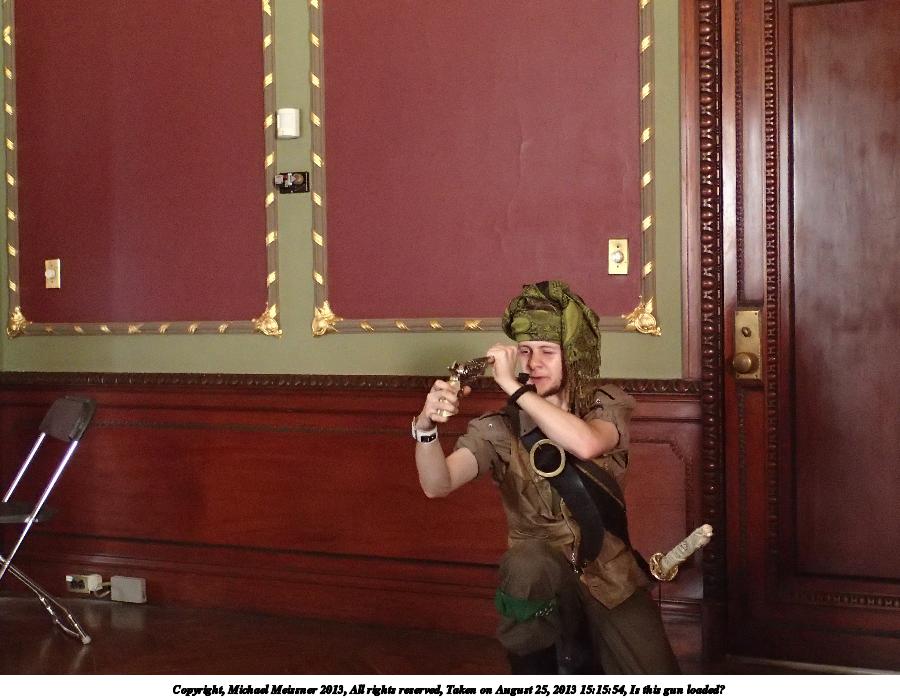 Picture #15: Is this gun loaded? Thumb: 450x338, 35,604 bytes (35K) Small: 900x698, 92,913 bytes (91K), (html file) Large: 3600x2700, 3,525,147 bytes (3.4M), (html file) Copyright, Michael Meissner 2013, All rights reserved Olympus TG-2 camera f/3.4, ISO 1250, 1/13 sec, 9.6mm, auto mode, HQ, matrix metering, image stabilization, noise filter n/a 35mm equivalent focal length 53.0mm Programs used: crop Taken by Michael Meissner on August 25, 2013 15:15:54 Last modified on February 17, 2014 at 09:39 |