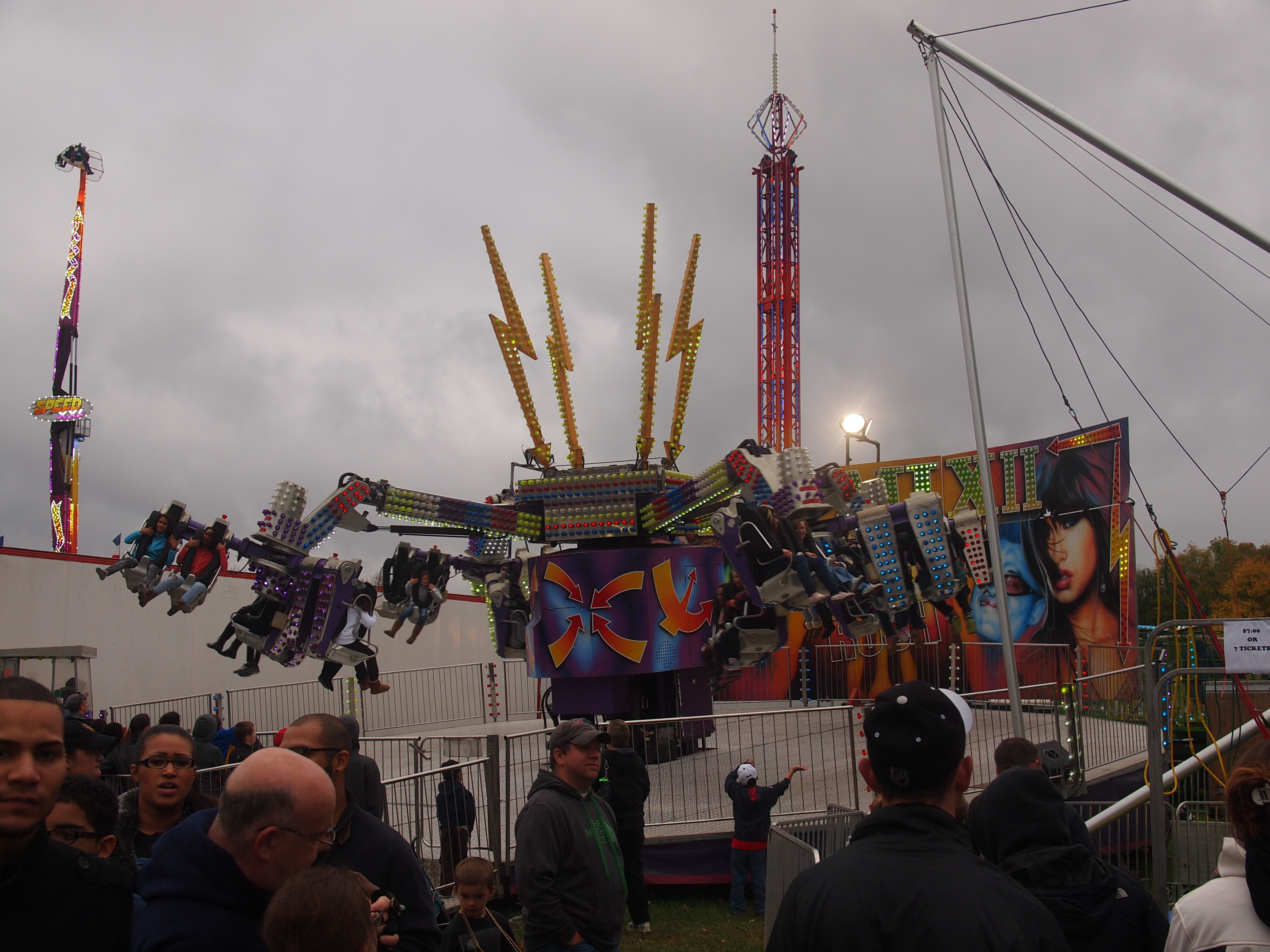 Picture #31: Whirling ride Small: 1000x773, 85,954 bytes (84K), (html file) Large: 4000x3000, 4,929,227 bytes (4.7M), (html file) Copyright, Michael Meissner 2013, All rights reserved Olympus E-5 camera with Olympus 14-54mm f/2.8-3.5 lens f/5.6, ISO 200, 1/250 sec, 22.0mm, auto mode, vivid color, matrix metering, IS1 (All Direction Shake IS) 35mm equivalent focal length 44.0mm Programs used: crop Taken by Michael Meissner on October 12, 2013 16:01:11 Last modified on February 17, 2014 at 08:08 |