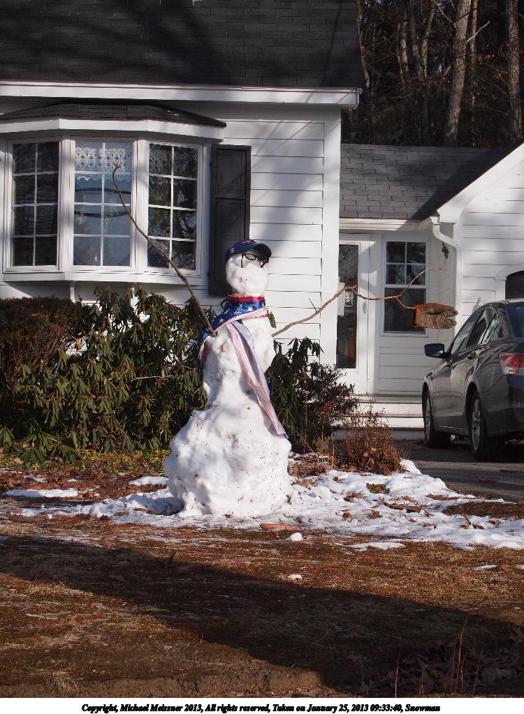 Picture #3: Snowman #2 750x1023, 192,960 bytes (189K), (html file) Copyright, Michael Meissner 2013, All rights reserved Olympus E-P2 camera with Olympus-m43 14-42mm f/3.5-5.6 lens f/10.0, ISO 200, 1/320 sec, 42.0mm, auto mode, vivid color, matrix metering, IS1 (All Direction Shake IS) 35mm equivalent focal length 84.0mm Taken by Michael Meissner on January 25, 2013 09:33:40 Last modified on March 12, 2013 at 02:20 |