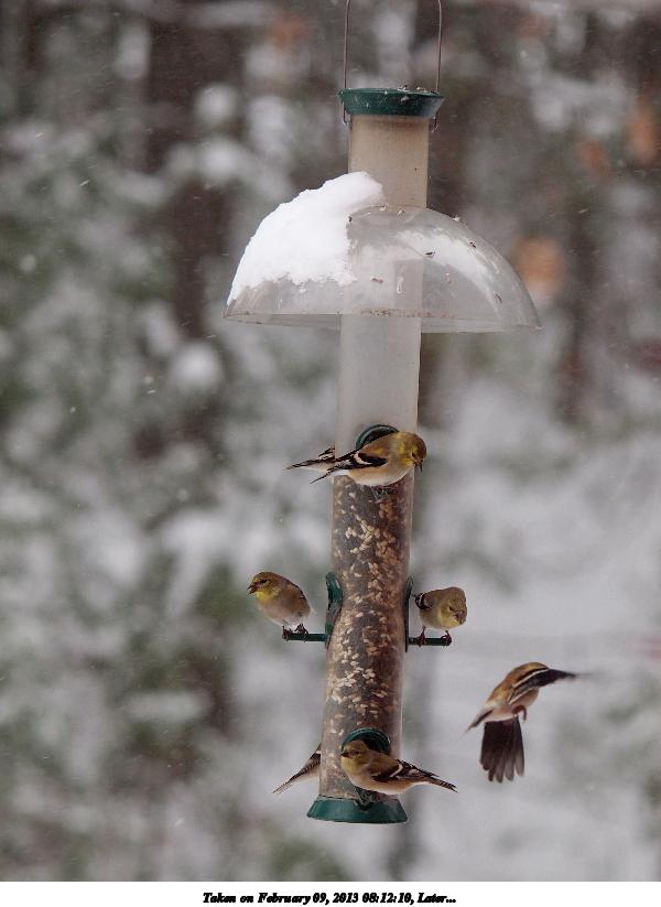 Picture #50: Birds at the feeder #8 600x823, 64,908 bytes (64K), (html file) Olympus E-5 camera with Olympus 50-200mm lens f/2.9, ISO 320, 1/500 sec, 96.0mm, shutter priority, vivid color, matrix metering, IS1 (All Direction Shake IS) 35mm equivalent focal length 192.0mm Extra equipment used: Shot through glass window Programs used: crop, gimp, rotate left Taken by Michael Meissner on February 09, 2013 08:12:11 Last modified on February 09, 2013 at 12:55 This picture is one of my favorites. |