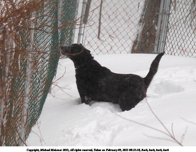 Picture #48: Bark, bark, bark, bark #2 800x623, 103,977 bytes (102K), (html file) Copyright, Michael Meissner 2013, All rights reserved Olympus E-5 camera with Olympus 50-200mm lens f/3.5, ISO 200, 1/400 sec, 108.0mm, auto mode, vivid color, matrix metering, IS1 (All Direction Shake IS) 35mm equivalent focal length 216.0mm Programs used: crop, gimp Taken by Michael Meissner on February 09, 2013 08:13:41 Last modified on February 09, 2013 at 12:44 |