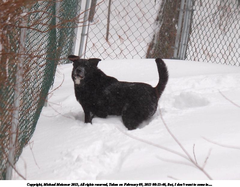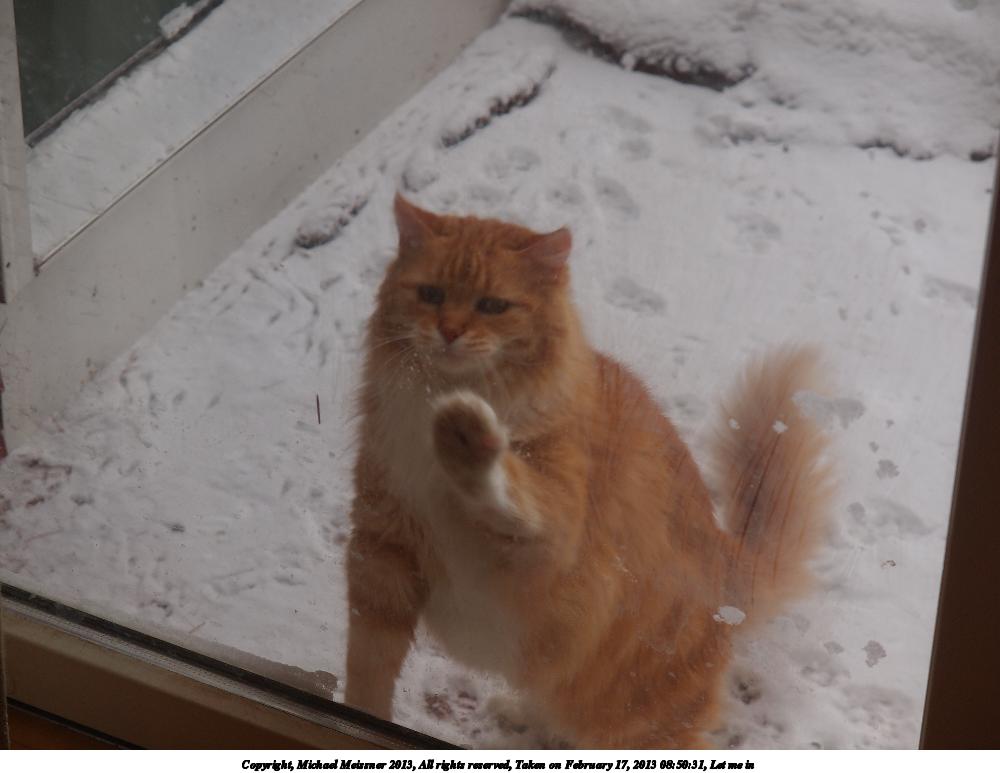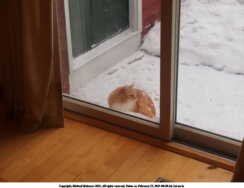Picture #47: But, I don't want to come in.... 800x623, 96,730 bytes (95K), (html file) Copyright, Michael Meissner 2013, All rights reserved Olympus E-5 camera with Olympus 50-200mm lens f/3.5, ISO 200, 1/320 sec, 108.0mm, auto mode, vivid color, matrix metering, IS1 (All Direction Shake IS) 35mm equivalent focal length 216.0mm Programs used: crop, gimp Taken by Michael Meissner on February 09, 2013 08:13:46 Last modified on February 09, 2013 at 12:45 |