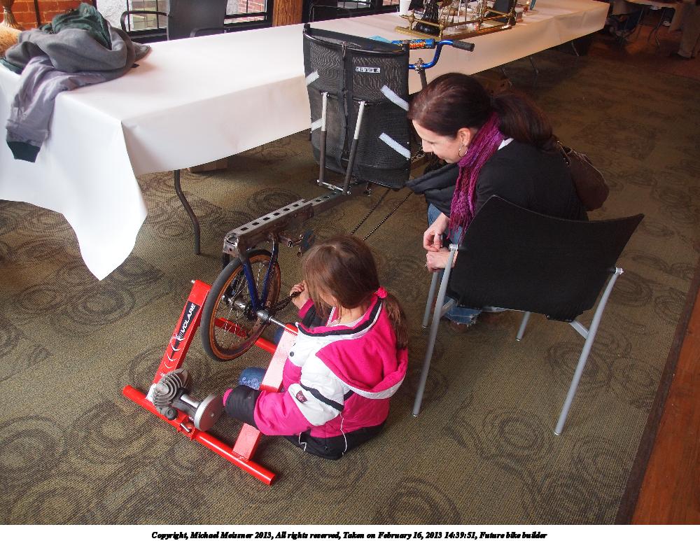 Picture #37: Future bike builder 1000x773, 178,487 bytes (175K), (html file) Copyright, Michael Meissner 2013, All rights reserved Olympus E-5 camera with Olympus 14-54mm f/2.8-3.5 lens f/2.8, ISO 640, 1/60 sec, 14.0mm, auto mode, vivid color, matrix metering, IS1 (All Direction Shake IS) 35mm equivalent focal length 28.0mm Programs used: crop Taken by Michael Meissner on February 16, 2013 14:39:51 Last modified on February 17, 2013 at 16:54 |