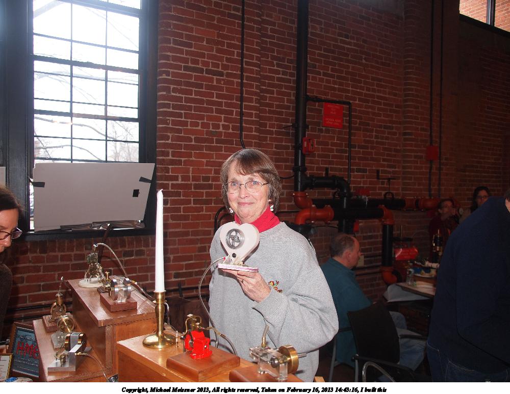Picture #26: I built this 1000x773, 131,178 bytes (129K), (html file) Copyright, Michael Meissner 2013, All rights reserved Olympus E-5 camera with Olympus 14-54mm f/2.8-3.5 lens f/2.8, ISO 200, flash (+0.3 flash compensation), 1/60 sec, 14.0mm, auto mode, vivid color, matrix metering, IS1 (All Direction Shake IS) 35mm equivalent focal length 28.0mm Programs used: crop Taken by Michael Meissner on February 16, 2013 14:43:16 Last modified on February 17, 2013 at 17:00 |