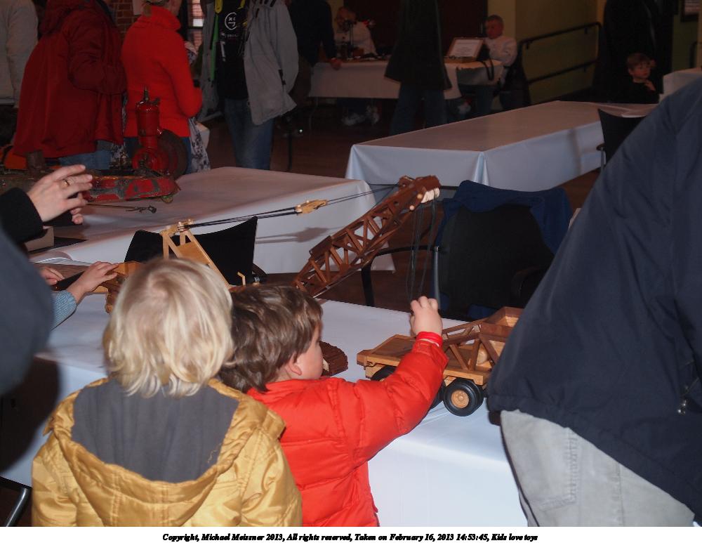 Picture #21: Kids love toys #2 1000x773, 128,220 bytes (126K), (html file) Copyright, Michael Meissner 2013, All rights reserved Olympus E-5 camera with Olympus 14-54mm f/2.8-3.5 lens f/2.8, ISO 200, flash (+0.3 flash compensation), 1/60 sec, 14.0mm, auto mode, vivid color, matrix metering, IS1 (All Direction Shake IS) 35mm equivalent focal length 28.0mm Programs used: crop Taken by Michael Meissner on February 16, 2013 14:44:15 Last modified on February 17, 2013 at 17:02 |