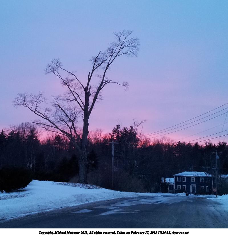 Picture #6: Ayer sunset 600x823, 56,951 bytes (56K), (html file) Copyright, Michael Meissner 2013, All rights reserved Samsung S2 phone f/2.6, ISO 64, 1/60 sec, 4.0mm, aperture priority, center weight metering Programs used: crop, rotate right Taken by Michael Meissner on February 17, 2013 17:22:25 Last modified on February 17, 2013 at 18:36 |