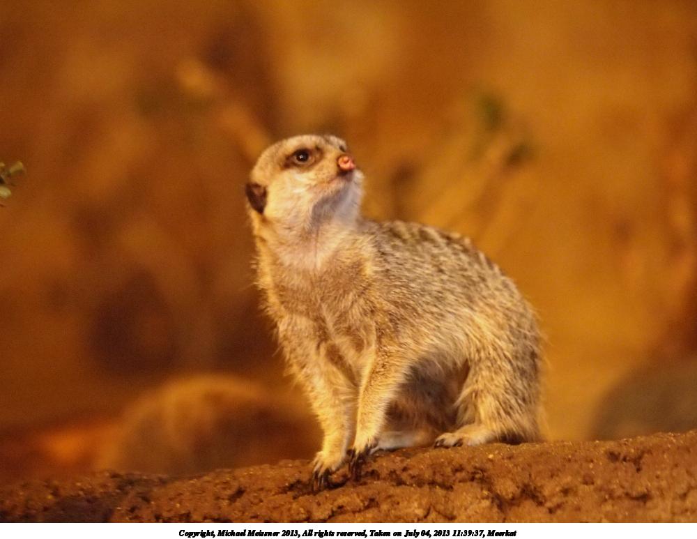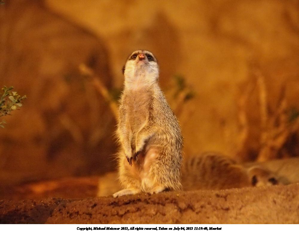 Picture #118: Meerkat #4 1000x773, 92,946 bytes (91K), (html file) Copyright, Michael Meissner 2013, All rights reserved Olympus E-5 camera with Olympus 50-200mm lens f/2.9, ISO 3200, 1/80 sec, 112.0mm, auto mode, vivid color, center weight metering, IS1 (All Direction Shake IS) 35mm equivalent focal length 224.0mm Programs used: crop, gimp Taken by Michael Meissner on July 04, 2013 11:39:38 Last modified on July 14, 2013 at 20:23 |