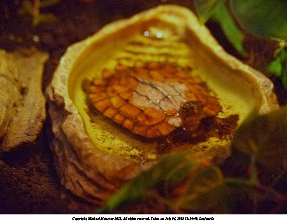 Picture #108: Leaf turtle 1000x773, 113,862 bytes (112K), (html file) Copyright, Michael Meissner 2013, All rights reserved Olympus E-5 camera with Olympus 50-200mm lens f/2.9, ISO 3200, 1/60 sec, 96.0mm, auto mode, vivid color, center weight metering, IS1 (All Direction Shake IS) 35mm equivalent focal length 192.0mm Programs used: adjusttime, crop, raw therapee Taken by Michael Meissner on July 04, 2013 12:14:40 Last modified on July 14, 2013 at 20:39 |