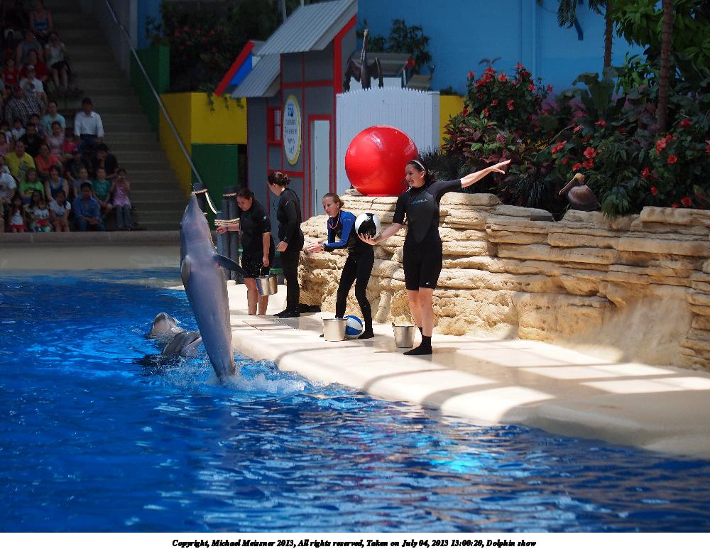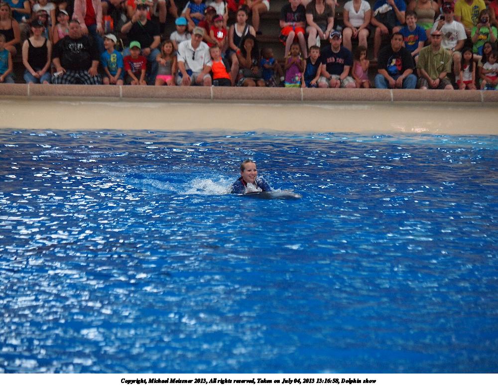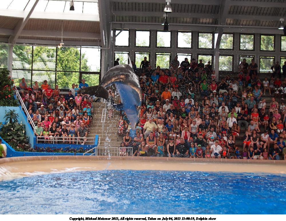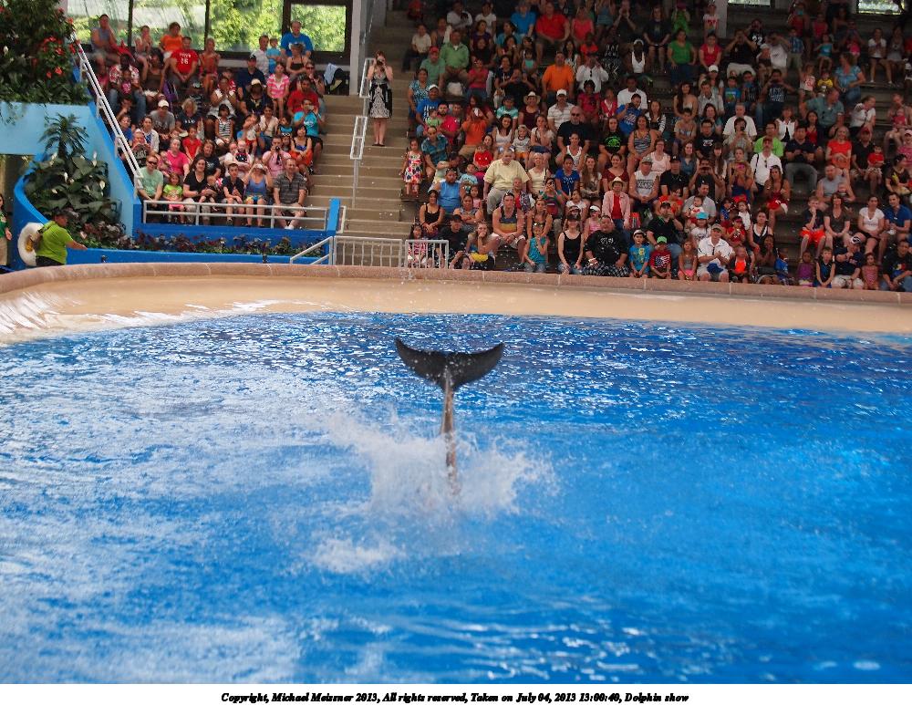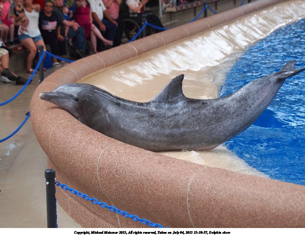 Picture #74: Dolphin show #32 1000x773, 183,699 bytes (180K), (html file) Copyright, Michael Meissner 2013, All rights reserved Olympus E-5 camera with Olympus 50-200mm lens f/2.8, ISO 400, 1/500 sec, 59.0mm, shutter priority, vivid color, center weight metering, IS1 (All Direction Shake IS) 35mm equivalent focal length 118.0mm Programs used: adjusttime, crop, raw therapee Taken by Michael Meissner on July 04, 2013 13:19:24 Last modified on July 14, 2013 at 20:49 This picture is one of my favorites. |