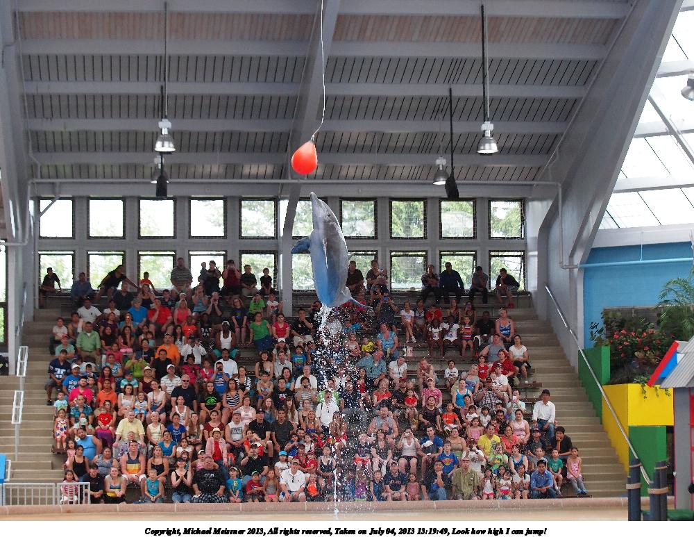Picture #84: Dolphin show #22 1000x773, 172,521 bytes (169K), (html file) Copyright, Michael Meissner 2013, All rights reserved Olympus E-5 camera with Olympus 50-200mm lens f/2.8, ISO 800, 1/800 sec, 55.0mm, shutter priority, vivid color, center weight metering, IS1 (All Direction Shake IS) 35mm equivalent focal length 110.0mm Programs used: adjusttime, crop, raw therapee Taken by Michael Meissner on July 04, 2013 13:13:42 Last modified on July 14, 2013 at 20:47 This picture is one of my favorites. |