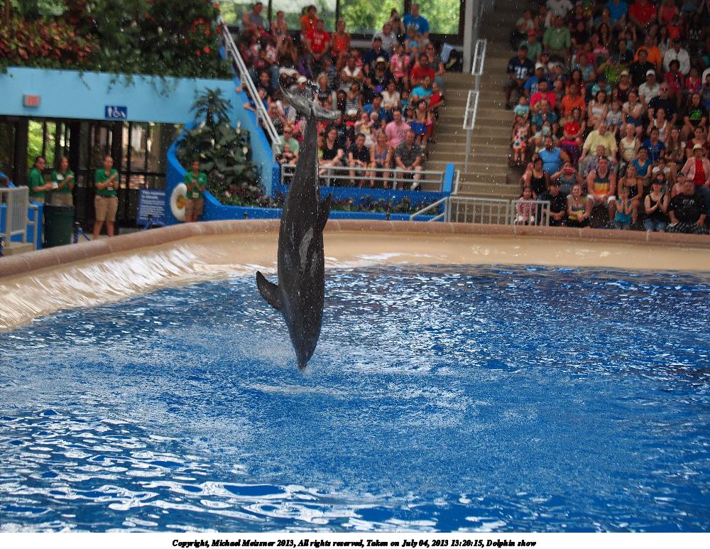 Picture #103: Dolphin show #5 1000x773, 151,994 bytes (149K), (html file) Copyright, Michael Meissner 2013, All rights reserved Olympus E-5 camera with Olympus 50-200mm lens f/2.8, ISO 400, 1/800 sec, 60.0mm, shutter priority, vivid color, center weight metering, IS1 (All Direction Shake IS) 35mm equivalent focal length 120.0mm Programs used: adjusttime, crop, raw therapee Taken by Michael Meissner on July 04, 2013 13:00:20 Last modified on July 14, 2013 at 20:41 |