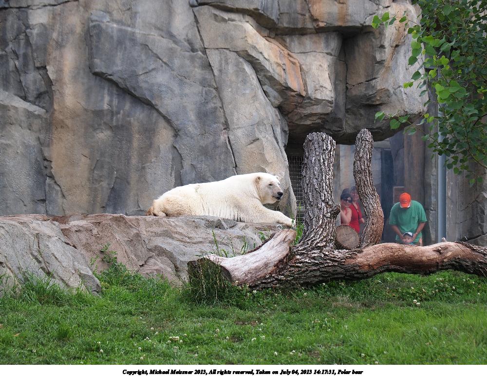 Picture #29: Polar bear #5 1000x773, 154,492 bytes (151K), (html file) Copyright, Michael Meissner 2013, All rights reserved Olympus E-5 camera with Olympus 50-200mm lens f/5.0, ISO 200, 1/400 sec, 60.0mm, auto mode, vivid color, center weight metering, IS1 (All Direction Shake IS) 35mm equivalent focal length 120.0mm Programs used: adjusttime, crop, raw therapee Taken by Michael Meissner on July 04, 2013 14:20:02 Last modified on July 14, 2013 at 21:11 |