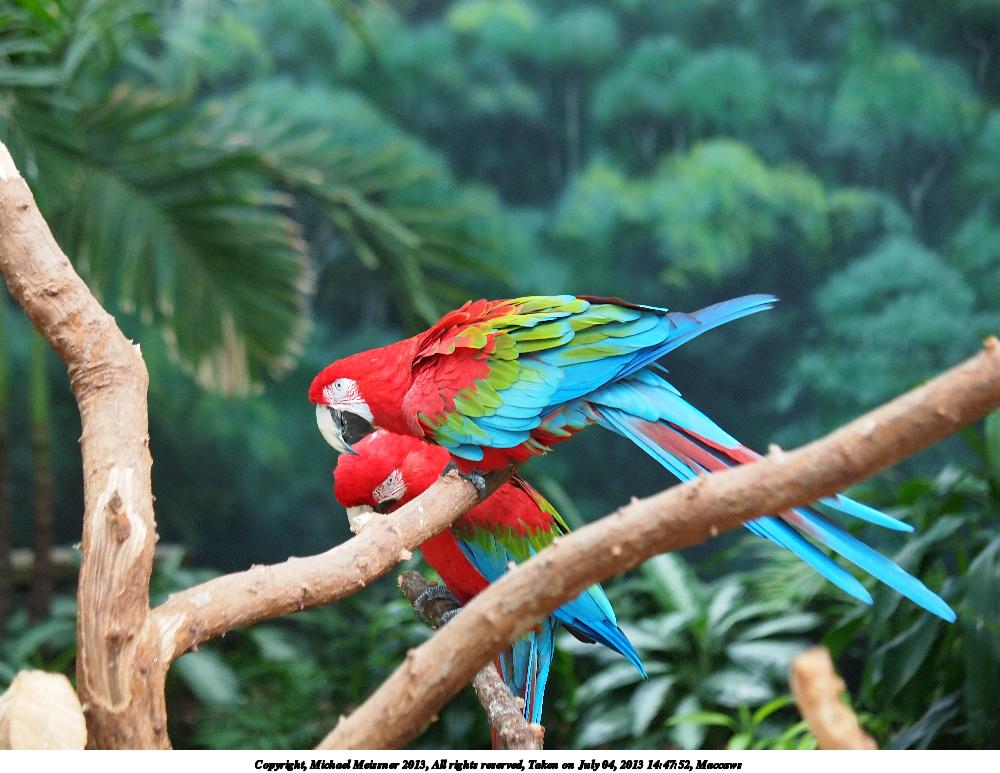 Picture #12: Maccaws 1000x773, 119,413 bytes (117K), (html file) Copyright, Michael Meissner 2013, All rights reserved Olympus E-5 camera with Olympus 50-200mm lens f/2.8, ISO 1000, 1/160 sec, 79.0mm, auto mode, vivid color, center weight metering, IS1 (All Direction Shake IS) 35mm equivalent focal length 158.0mm Programs used: adjusttime, crop, raw therapee Taken by Michael Meissner on July 04, 2013 14:47:52 Last modified on July 14, 2013 at 21:20 |