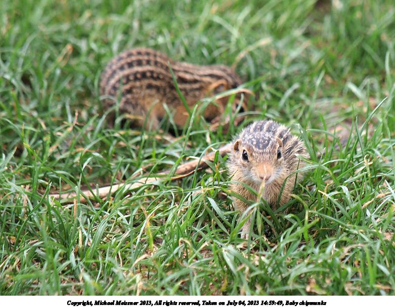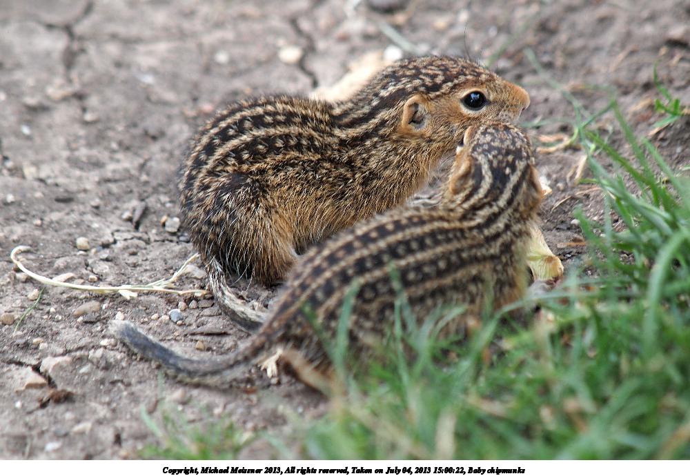 Picture #3: Baby chipmunks #3 1000x690, 141,633 bytes (139K), (html file) Copyright, Michael Meissner 2013, All rights reserved Olympus E-5 camera with Olympus 50-200mm lens f/3.5, ISO 200, 1/320 sec, 200.0mm, auto mode, vivid color, center weight metering, IS1 (All Direction Shake IS) 35mm equivalent focal length 401.0mm Programs used: adjusttime, crop, gimp, raw therapee Taken by Michael Meissner on July 04, 2013 15:00:22 Last modified on July 14, 2013 at 21:26 This picture is one of my favorites. |