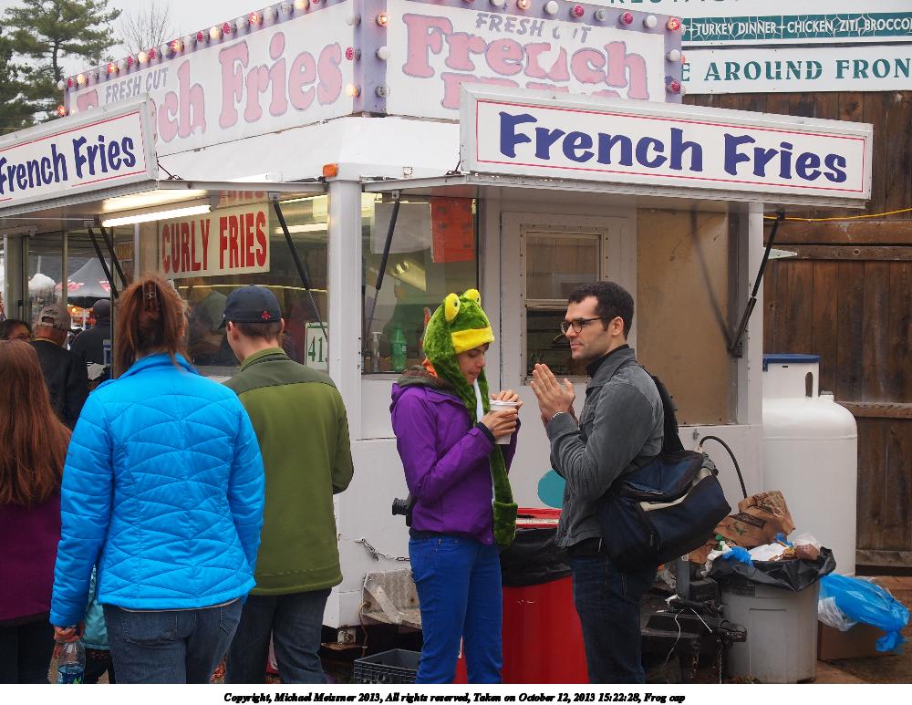 Picture #45: Frog cap 1000x773, 152,344 bytes (149K), (html file) Copyright, Michael Meissner 2013, All rights reserved Olympus E-5 camera with Olympus 14-54mm f/2.8-3.5 lens f/4.0, ISO 200, 1/100 sec, 32.0mm, auto mode, vivid color, matrix metering, IS1 (All Direction Shake IS) 35mm equivalent focal length 64.0mm Programs used: crop Taken by Michael Meissner on October 12, 2013 15:22:28 Last modified on February 17, 2014 at 08:02 |