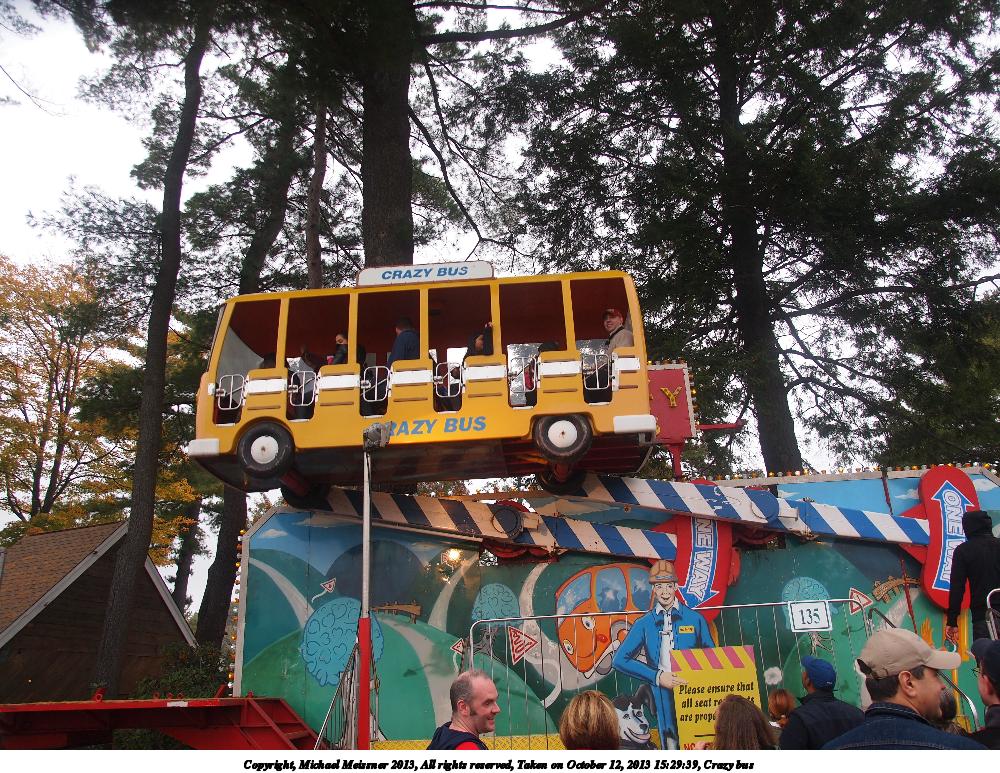 Picture #39: Crazy bus 1000x773, 247,599 bytes (242K), (html file) Copyright, Michael Meissner 2013, All rights reserved Olympus E-5 camera with Olympus 14-54mm f/2.8-3.5 lens f/3.5, ISO 200, 1/100 sec, 14.0mm, auto mode, vivid color, matrix metering, IS1 (All Direction Shake IS) 35mm equivalent focal length 28.0mm Programs used: crop Taken by Michael Meissner on October 12, 2013 15:29:39 Last modified on February 17, 2014 at 08:05 |