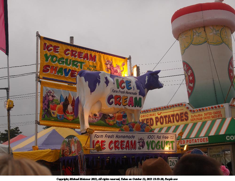 Picture #37: Purple cow 1000x773, 135,380 bytes (133K), (html file) Copyright, Michael Meissner 2013, All rights reserved Olympus E-5 camera with Olympus 14-54mm f/2.8-3.5 lens f/5.6, ISO 200, 1/200 sec, 33.0mm, auto mode, vivid color, matrix metering, IS1 (All Direction Shake IS) 35mm equivalent focal length 66.0mm Programs used: crop Taken by Michael Meissner on October 12, 2013 15:53:20 Last modified on February 17, 2014 at 08:06 |