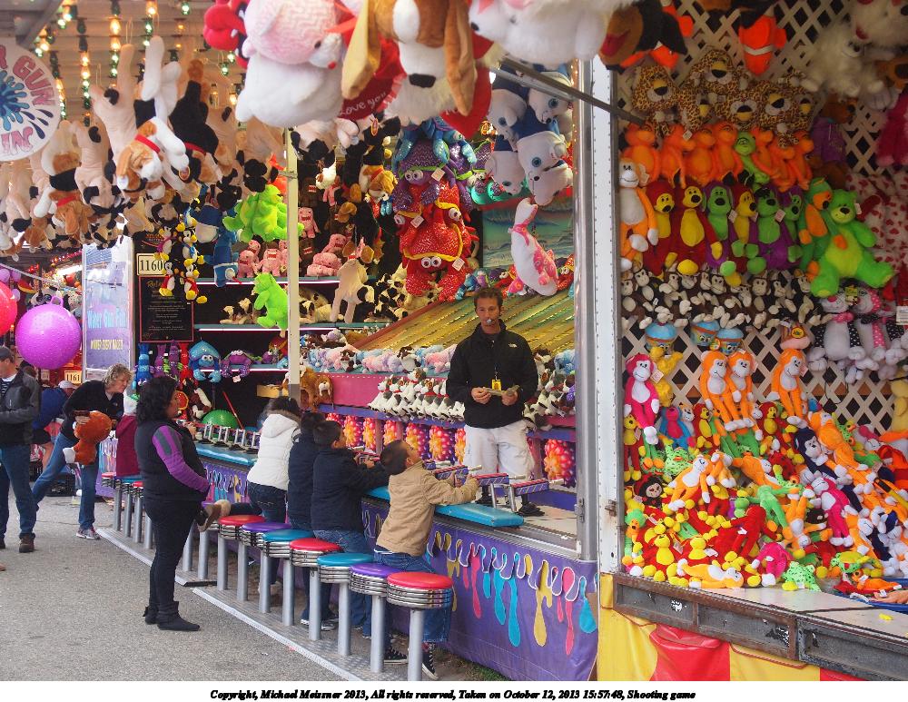 Picture #35: Shooting game 1000x773, 219,513 bytes (215K), (html file) Copyright, Michael Meissner 2013, All rights reserved Olympus E-5 camera with Olympus 14-54mm f/2.8-3.5 lens f/3.2, ISO 320, 1/60 sec, 27.0mm, auto mode, vivid color, matrix metering, IS1 (All Direction Shake IS) 35mm equivalent focal length 54.0mm Programs used: crop Taken by Michael Meissner on October 12, 2013 15:57:48 Last modified on February 17, 2014 at 08:07 |