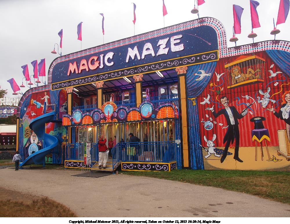 Picture #22: Magic Maze 1000x773, 201,194 bytes (197K), (html file) Copyright, Michael Meissner 2013, All rights reserved Olympus E-5 camera with Olympus 14-54mm f/2.8-3.5 lens f/3.5, ISO 200, 1/125 sec, 14.0mm, auto mode, vivid color, matrix metering, IS1 (All Direction Shake IS) 35mm equivalent focal length 28.0mm Programs used: crop Taken by Michael Meissner on October 12, 2013 16:20:14 Last modified on February 17, 2014 at 08:12 |