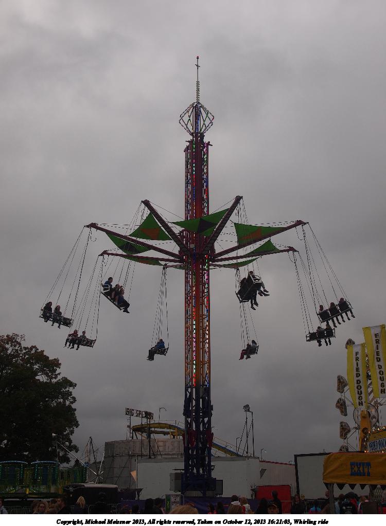 Picture #18: Whirling ride #3 1000x773, 142,803 bytes (140K), (html file) Copyright, Michael Meissner 2013, All rights reserved Olympus E-5 camera with Olympus 14-54mm f/2.8-3.5 lens f/4.5, ISO 200, 1/200 sec, 17.0mm, auto mode, vivid color, matrix metering, IS1 (All Direction Shake IS) 35mm equivalent focal length 34.0mm Programs used: crop Taken by Michael Meissner on October 12, 2013 16:22:01 Last modified on February 17, 2014 at 08:18 |