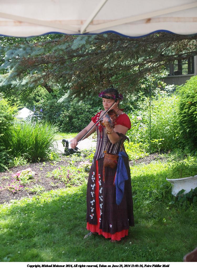 Picture #1: Faire Fiddler Maid Thumb: 375x500, 65,875 bytes (65K) Small: 750x1023, 241,788 bytes (237K), (html file) Large: 3000x4000, 5,373,274 bytes (5.1M), (html file) Copyright, Michael Meissner 2014, All rights reserved Olympus E-5 camera with Olympus 14-54mm f/2.8-3.5 lens f/3.5, ISO 500, 1/1000 sec, 32.0mm, shutter priority, vivid color, SHQ, matrix metering, IS1 (All Direction Shake IS) 35mm equivalent focal length 64.0mm Programs used: crop, raw therapee, rotate left Taken by Michael Meissner on June 29, 2014 13:03:16 Last modified on December 25, 2014 at 18:38 |